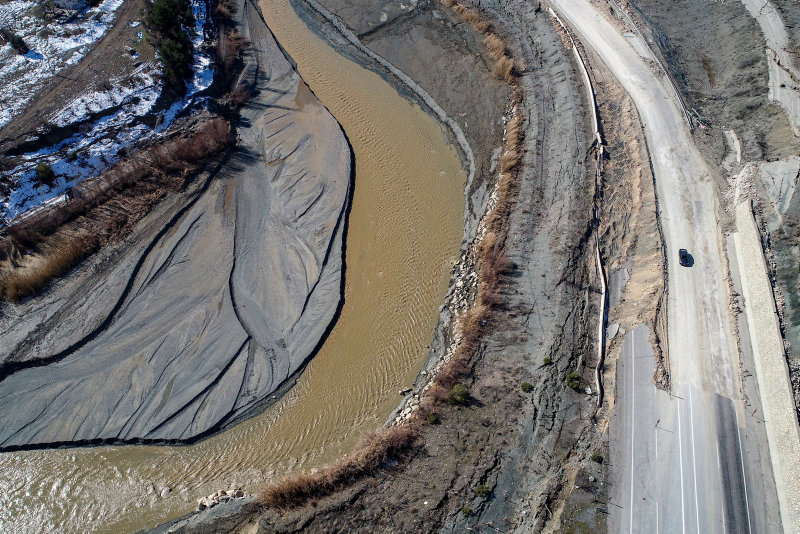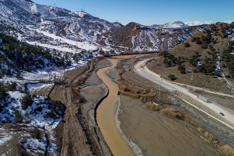 Yaşanan depremler sonrası Gölbaşı ilçesinden de geçen Göksu çayının rengi değişti.