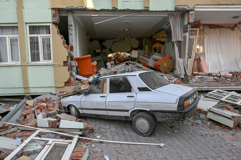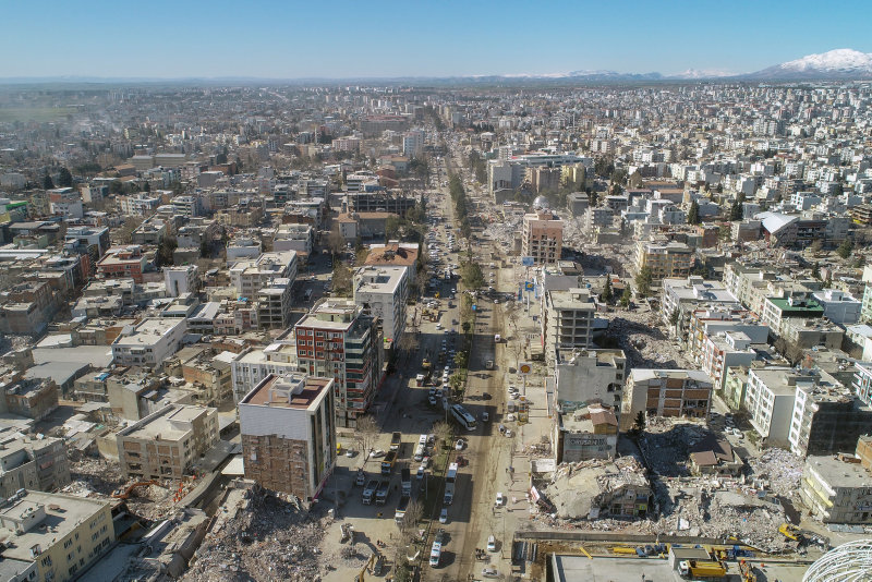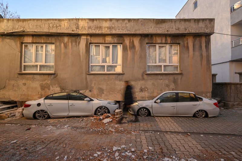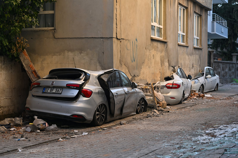 Kahramanmaraş merkezli depremlerden etkilenen Adıyaman'da şiddetli sarsıntının etkisiyle yüzlerce ev, cami, okul ve iş yeri yıkıldı, park halindeki birçok araç hasar gördü.