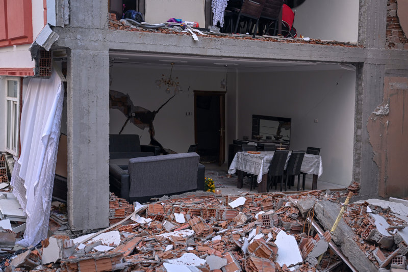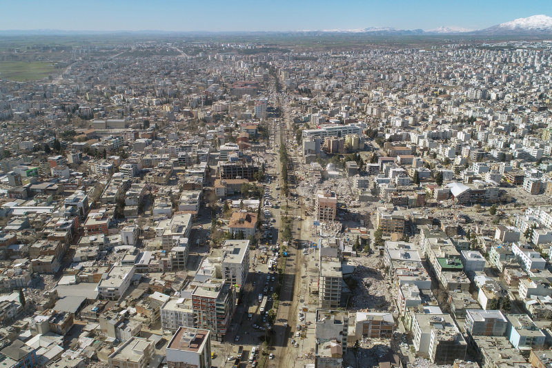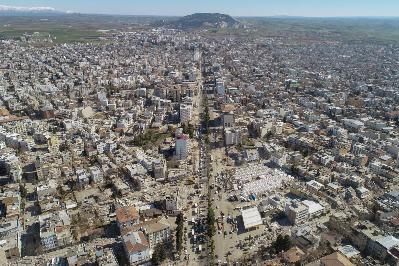 Adeta enkaz yığınına dönüşen kentte yüzlerce ev, cami, okul ve iş yeri yıkıldı, birçok araç yıkılan binaların enkazında kaldı.