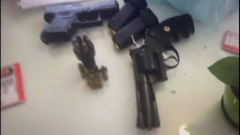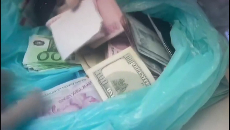 Söz konusu görüntülerde, polisin evde bulduğu yüklü miktarda Türk Lirası ve dövizin yanı sıra silah ve mermiler de yer alıyor.