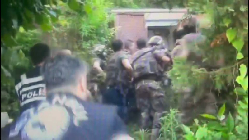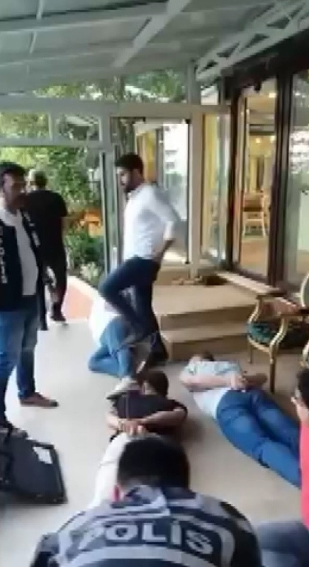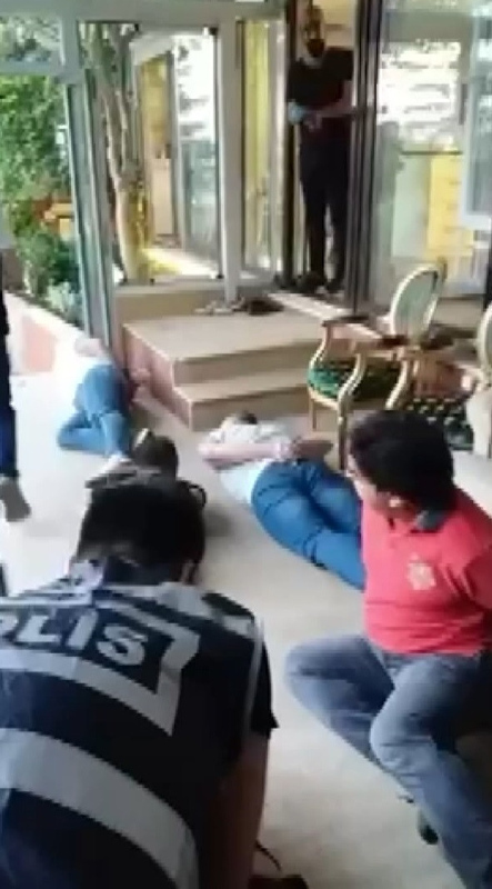 Polis ekiplerinin evdekilere "teslim ol" uyarılarının duyulduğu görüntülerde, gözaltına alınan bazı kişilerin kelepçeli şekilde yerde yattığı da görülüyor.