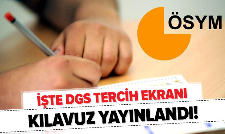 DGS tercih kılavuzu 2019 yayına verildi. ÖSYM Başkanı Prof.Dr. Halis Aygün, "2019-DGS tercihleri alınmaya başlamıştır. Adaylar tercihlerini 21-28 Ağustos 2019 tarihleri arasında https://ais.osym.gov.tr sayfamızdan yapabilirler. Yapacağınız tercihlerin hayırlı olmasını temenni eder başarılar dilerim." dedi.