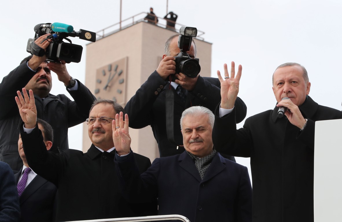 31 Mart yerel seçimlerinin manifestosunu açıklayacağını anımsatan Erdoğan, bu manifestoyla birlikte yerel seçimlerin çerçevesini çizmiş olacaklarını söyledi. AK Parti olarak yerel seçimlere çok yoğun hazırlandıklarını ifade eden Erdoğan, "Şu anda da bu hazırlıkların neticesinde bu yerel seçimlerde hangi çerçevede neler yapacağız bunların hazırlıklarını bitirdik. Özellikle merkezi yönetimde neler yaptığımızı biliyorsunuz. Eğitimde neler yaptık, neler yapıyoruz, sağlıkta neler yaptık, neler yapıyoruz, adalette, emniyette neler yaptık, neler yapıyoruz, ulaşımda neler yaptık, neler yapıyoruz, enerjide neler yaptık, neler yapıyoruz, dış politikada dünyadaki konumumuz nedir, bunları zaten biliyorsunuz. Şimdi yerel seçimdeyiz. Yerel seçimde İstanbul'dan yola çıkarken üç Ç demiştik. Çöp, çukur, çamur. Niye? Çünkü, CHP demek çöp demektir, çukur demektir, çamur demektir. Biz gedik bunları yok ettik. Bunları tertemiz hale getirdik ve modern şehirler meydan getirdik" diye konuştu.