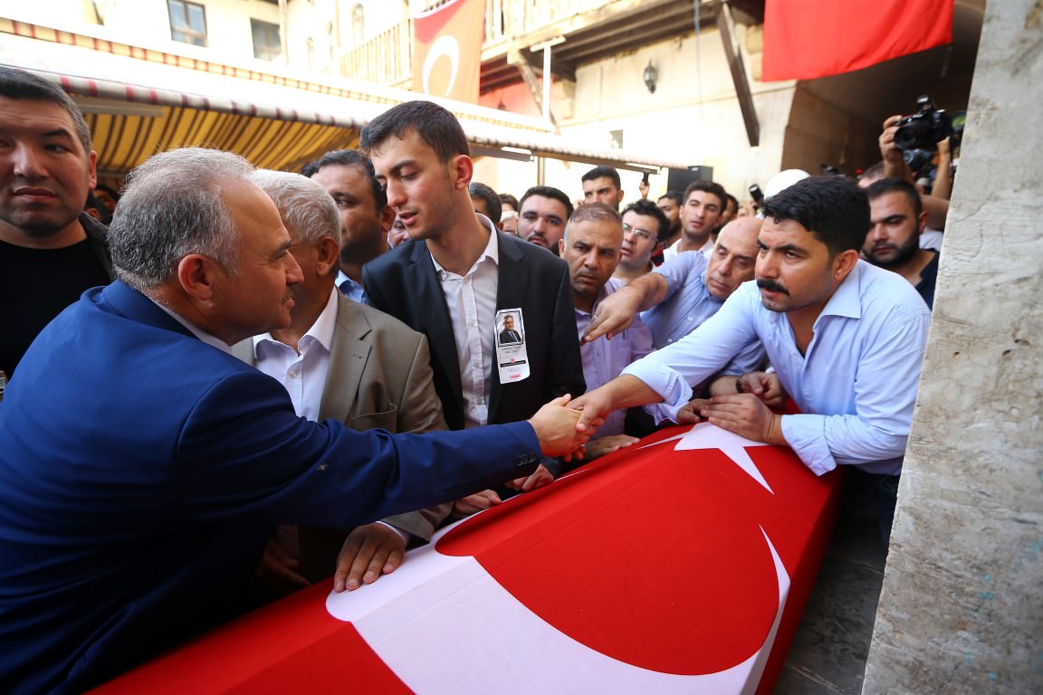 Yüksel'in Türk bayrağına sarılı naaşı, karayoluyla Gaziantep'ten memleketi Şanlıurfa'nın Birecik ilçesindeki Ulu Cami'ye götürüldü.