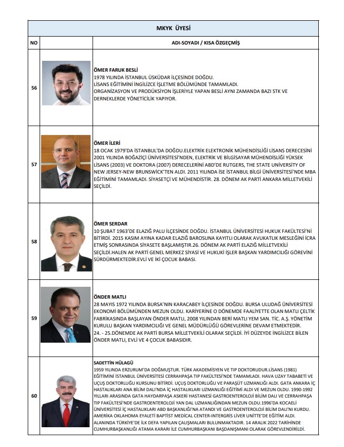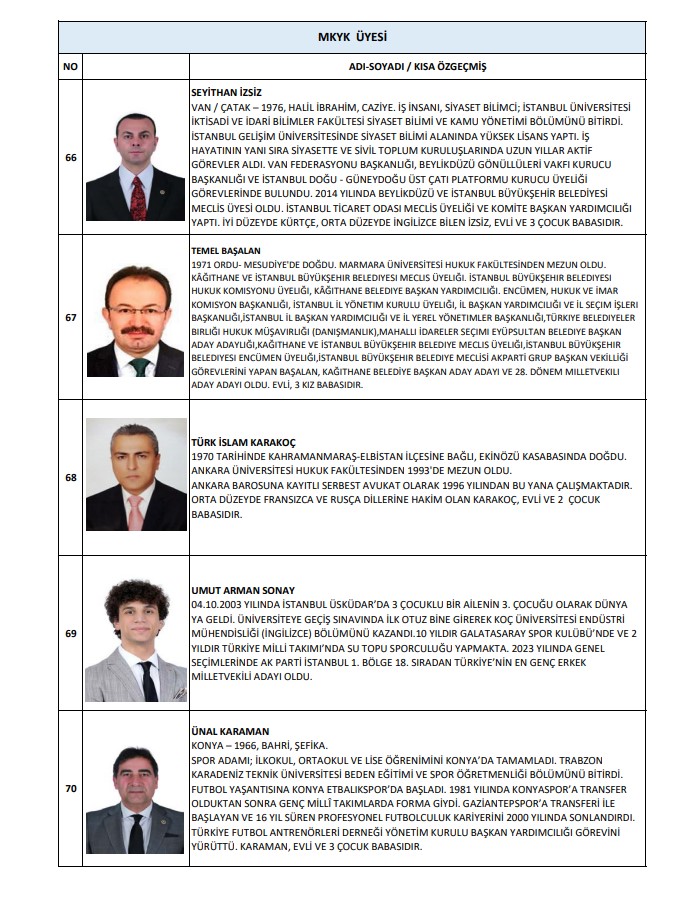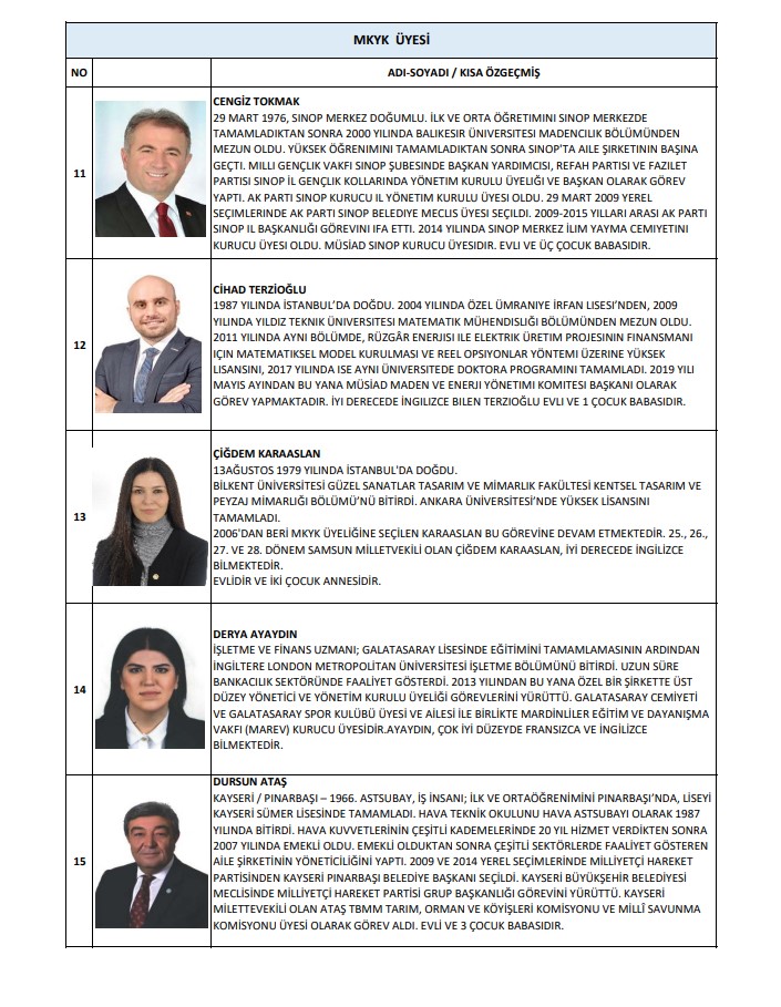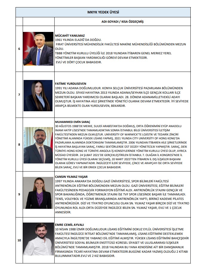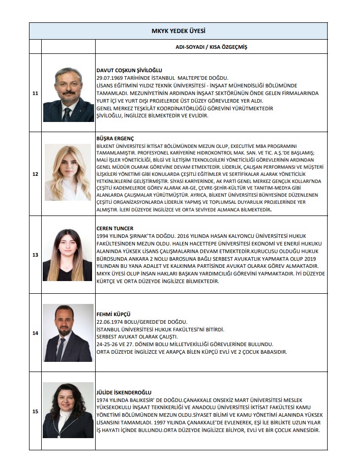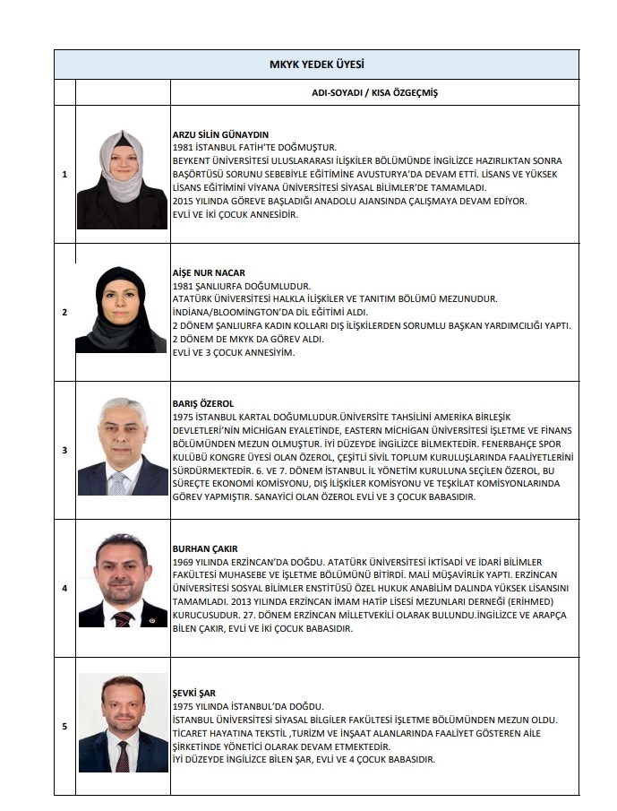 MKYK yedek üyeler ise şu isimlerden oluştu: