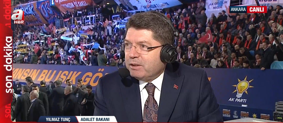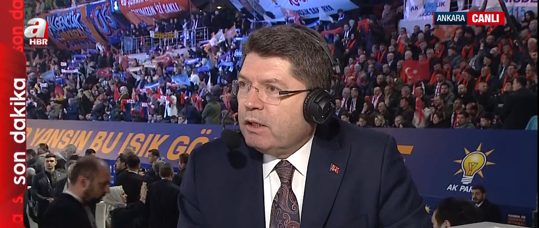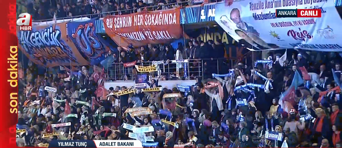 Adalet Bakanı Yılmaz Tunç: Muhteşem bir atmosfer var. Öncelikle kongremiz hayırlı uğurlu olsun ülkemiz için AK Parti'miz için. Salonun dışı tıklım tıklım dolu bu soğuğa rağmen. Türkiye'nin dört bir tarafından kongremize büyük bir heyecan içerisinde geldiler. Salonun içi şimdiden dolu.