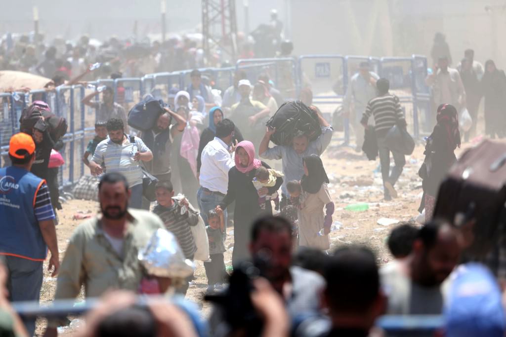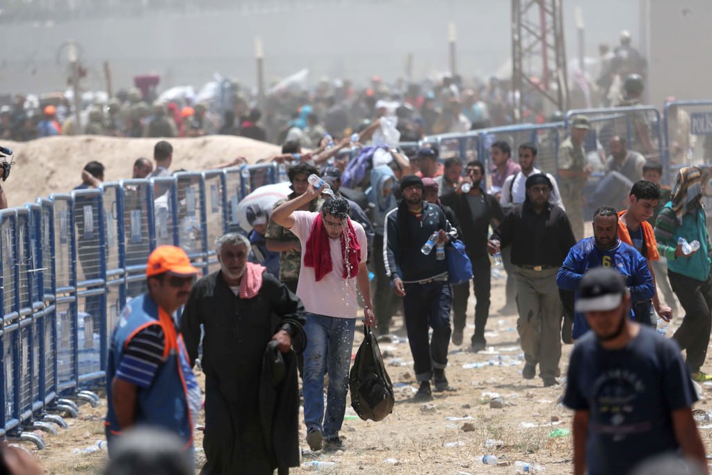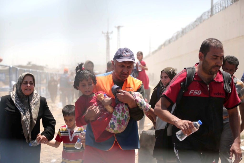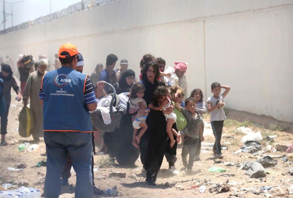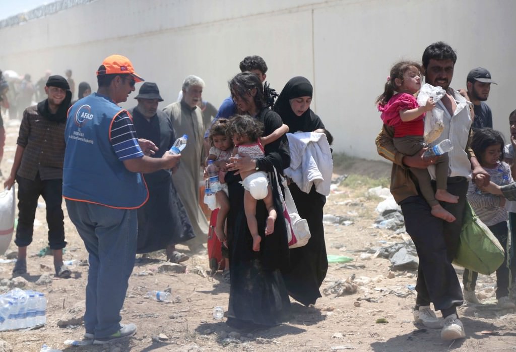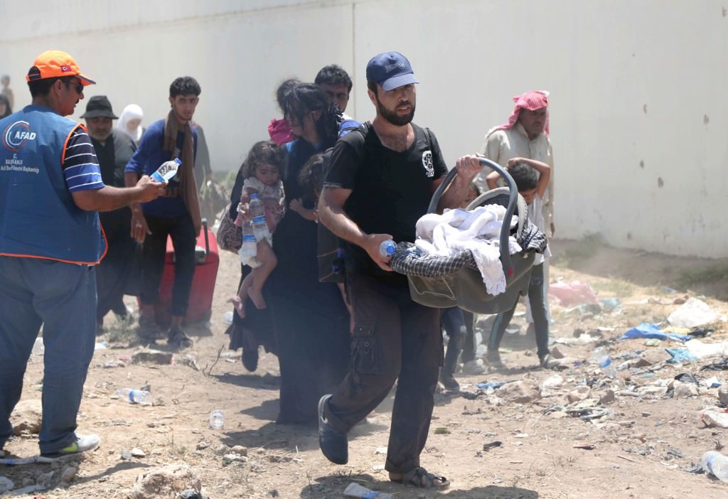 ABD öncülüğündeki koalisyon güçlerinin Suriye'nin Haseke kentine bağlı Rasulayn bölgesine düzenlediği hava bombardımanı ve bazı Kürt grupların baskısından kaçan bir grup Suriyeli, Akçakale Gümrük Kapısı'ndan Türkiye'ye girdi.
