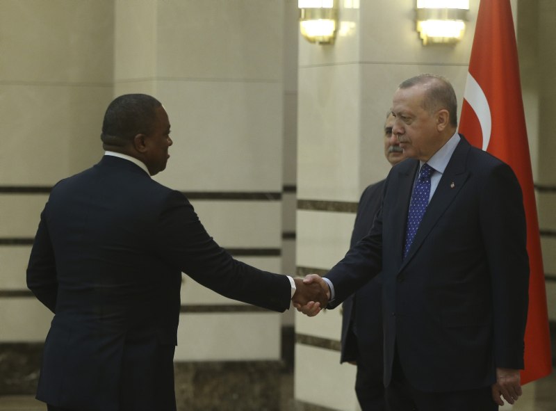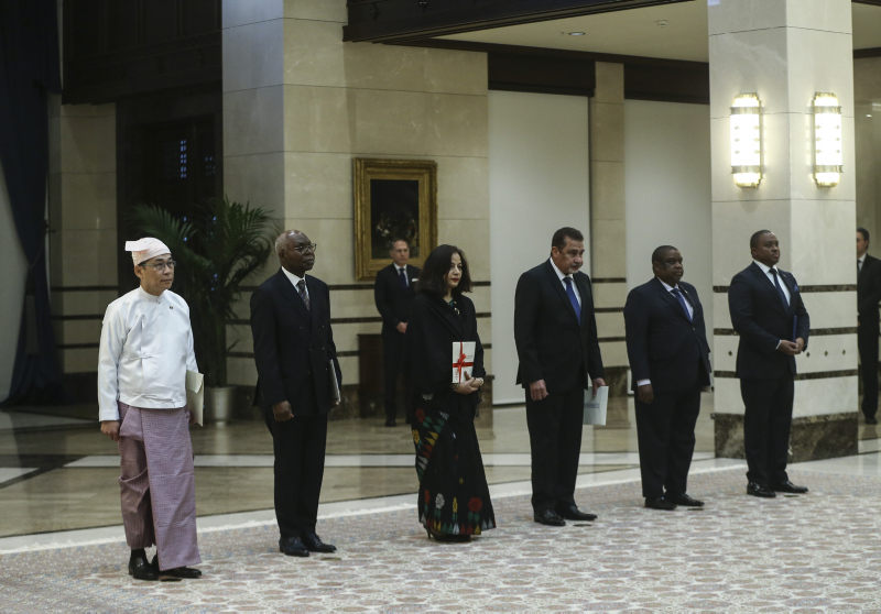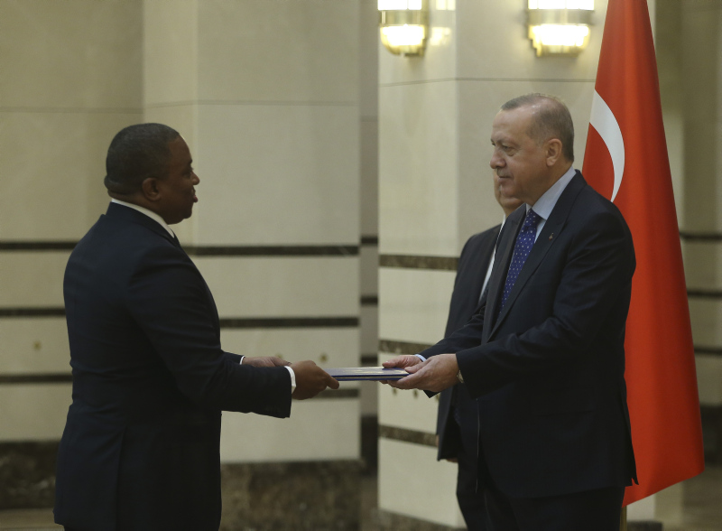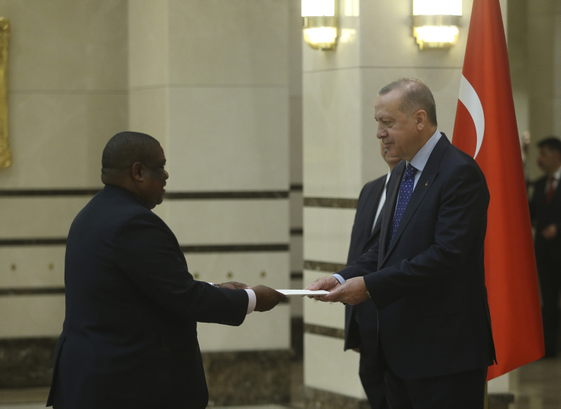Cumhurbaşkanlığı Külliyesi'ndeki törende, Esvatini Büyükelçisi Sibusisiwe Mngomezulu, Mozambik Büyükelçisi Cesar Francisco De Gouveia Junior, Seyşeller Büyükelçisi Louis Sylvestre Radegonde, Nepal Büyükelçisi Sewa Lamsal Adhikari, Togo Büyükelçisi Komi Bayadze Dagoh ve Myanmar Büyükelçisi Myint Lwin aynı anda Cumhurbaşkanı Erdoğan'a güven mektubu sundu.