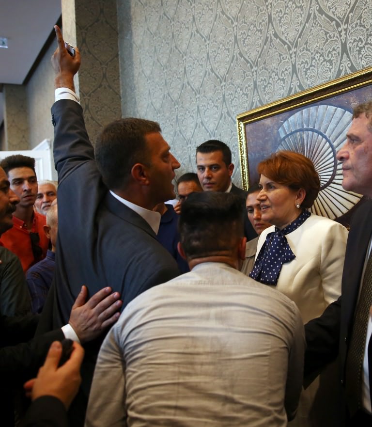 Salonda, Akşener'in konuşma yaptığı sırada bir grup, "Hareketin lideri Devlet Bahçeli" sloganı atarak protestoda bulundu.