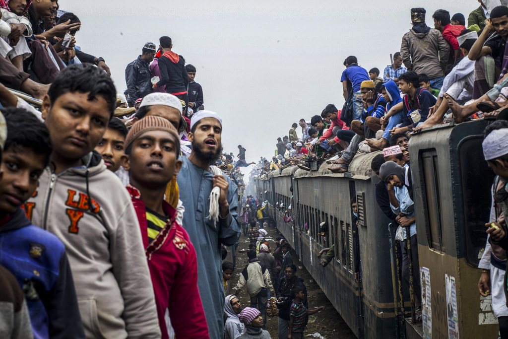 Her yıl Bangladeş'in Tongi kentinde toplanan müslümanlar Biswa Ijtema etkinliği için Turag Nehri kıyısında bir araya geldi.