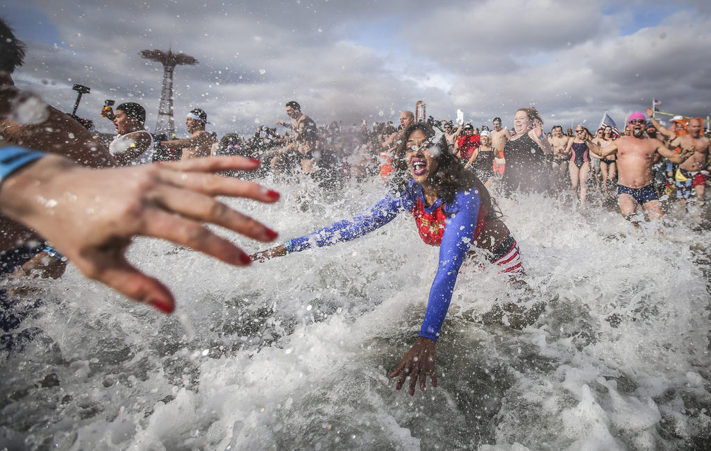 New York'ta 1903 yılından bu yana devam eden geleneği yaşatmak isteyen yaklaşık 3 bin kişi, yılın ilk gününde soğuk havaya aldırış etmeden mayo ve kostümlerle Atlantik Okyanusu'na girdi.