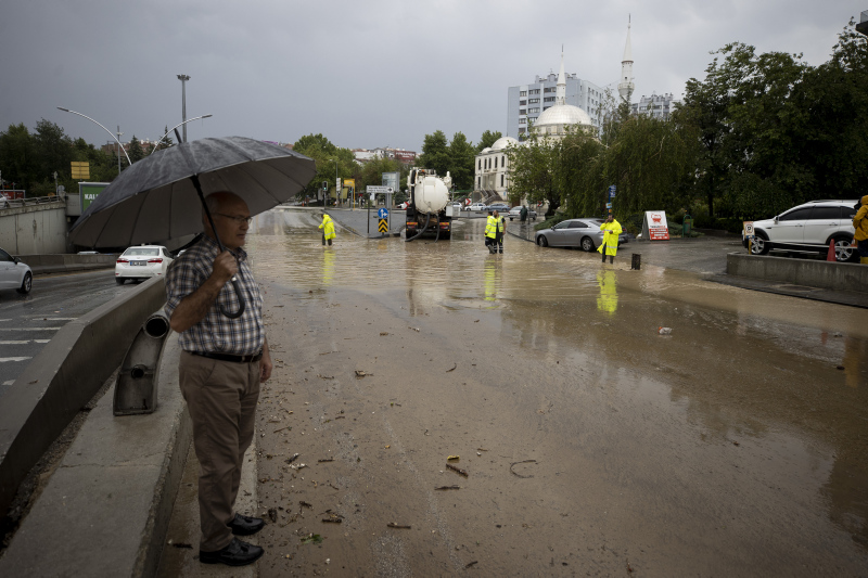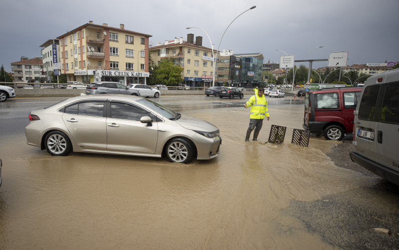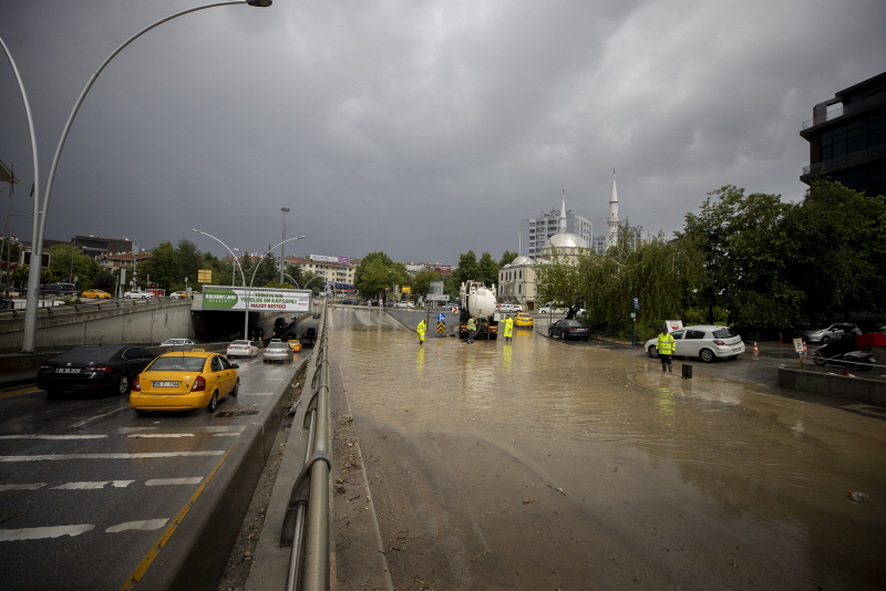 Ankara'da başlayan kuvvetli sağanak ve dolu yağışı hayatı olumsuz etkilerken, caddeler, alt ve üst geçitler sular altında kaldı.