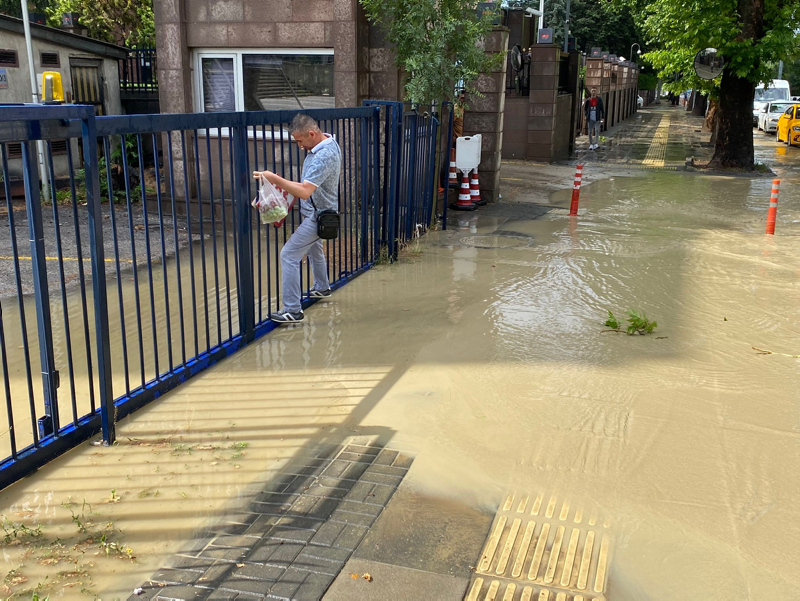 Balgat Çetin Emeç Bulvarı'nda rögar kapaklarındaki sorun nedeniyle caddeler suyla kaplandı.