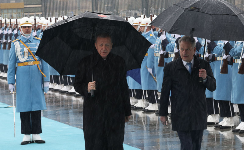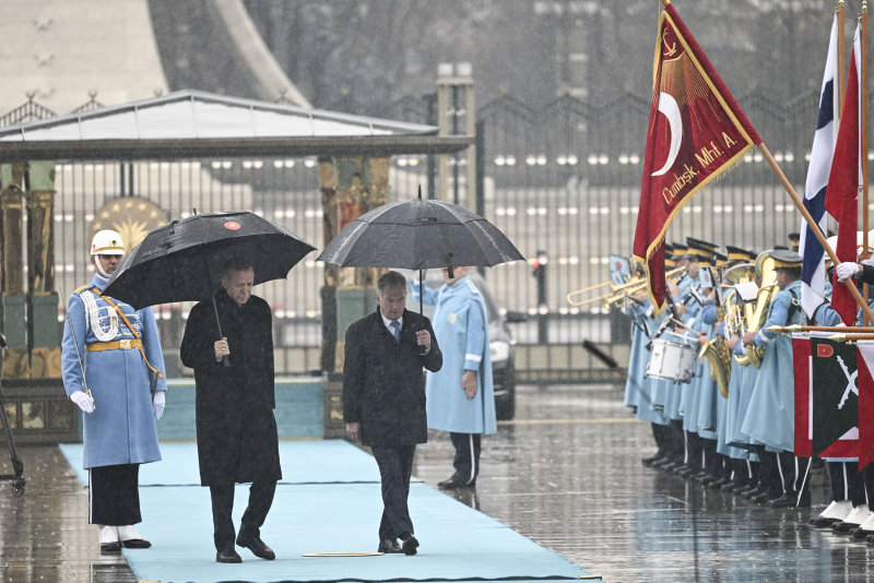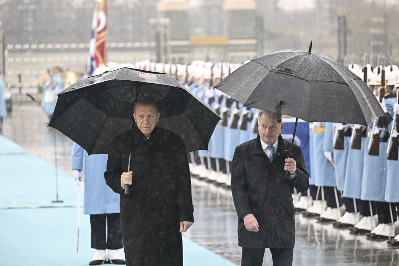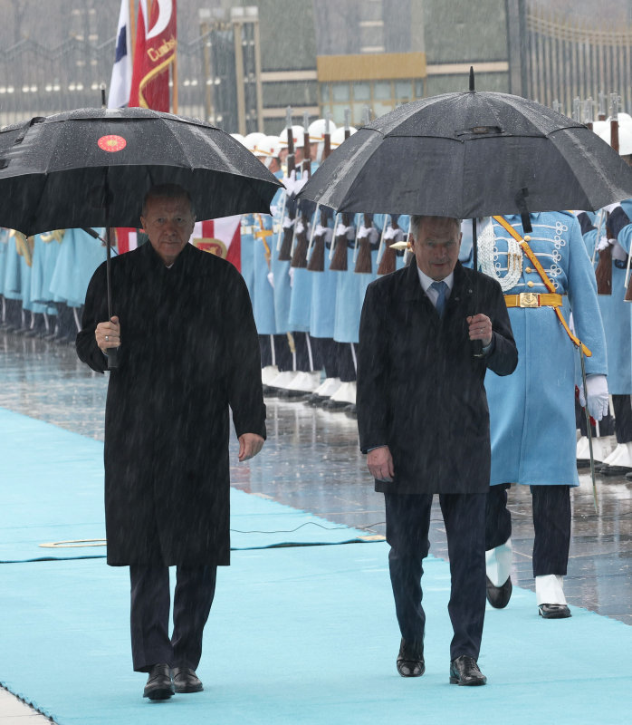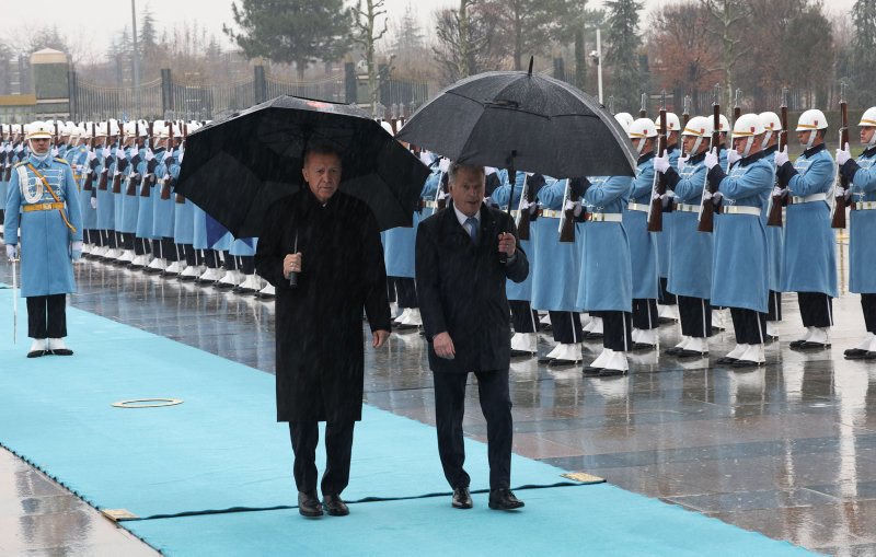 Son dakika haberi | Başkan Recep Tayyip Erdoğan, Türkiye'ye resmi ziyarette bulunan Finlandiya Cumhurbaşkanı Sauli Niinistö'yü Külliye'de düzenlenen törenle karşıladı. Sağanak yağış altında yapılan karşılama töreninde Finlandiya Cumhurbaşkanı Niinistö, Muhafız Alayı Tören Kıtası'nı "merhaba asker" diyerek Türkçe selamladı.