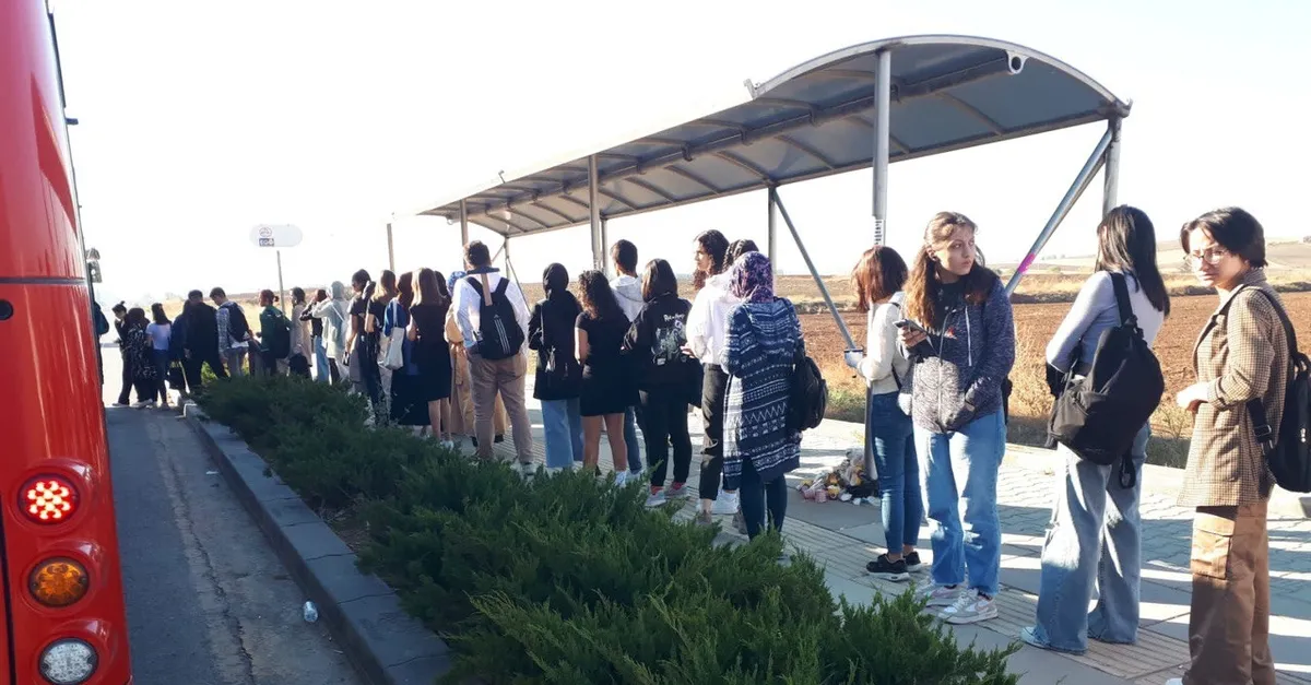 Şeyhmus Ertokuş: Uçak teknolojisi bölümünde eğitim görmekteyim. Otobüs seferlerinin yetersiz olduğundan ötürü 4 saati bulan bekleyişler var. Yağmurda ıslanıyoruz, gidiş gelişte zaten sürekli sorun yaşıyoruz. Çok uzun kuyruk oluyor.