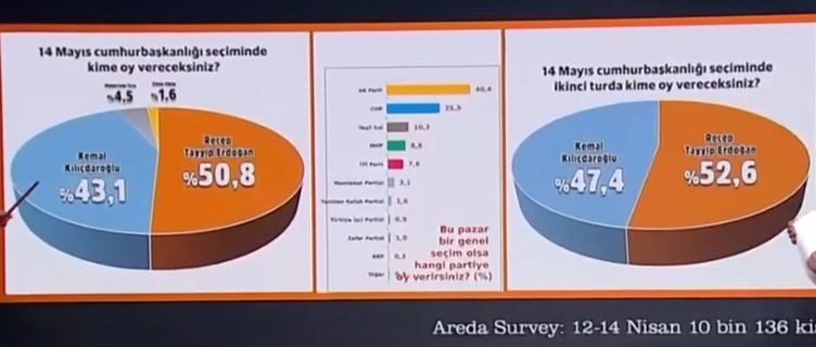 Son hesaplara göre toplamda 16 siyasi partinin desteklediği Kemal Kılıçdaroğlu'nun aldığı "geniş" desteğe rağmen seçimi kazanma imkânı görünmüyor. Kılıçdaroğlu da seçimi kaybedeceğini anladıkça ekonomik vaatlerini bol keseden dağıtmaya başladı.