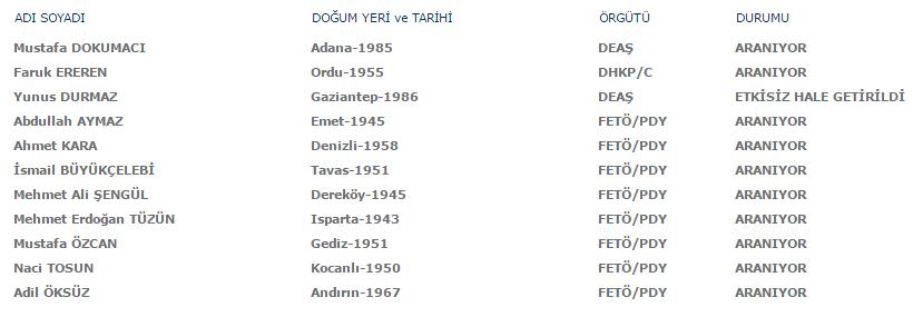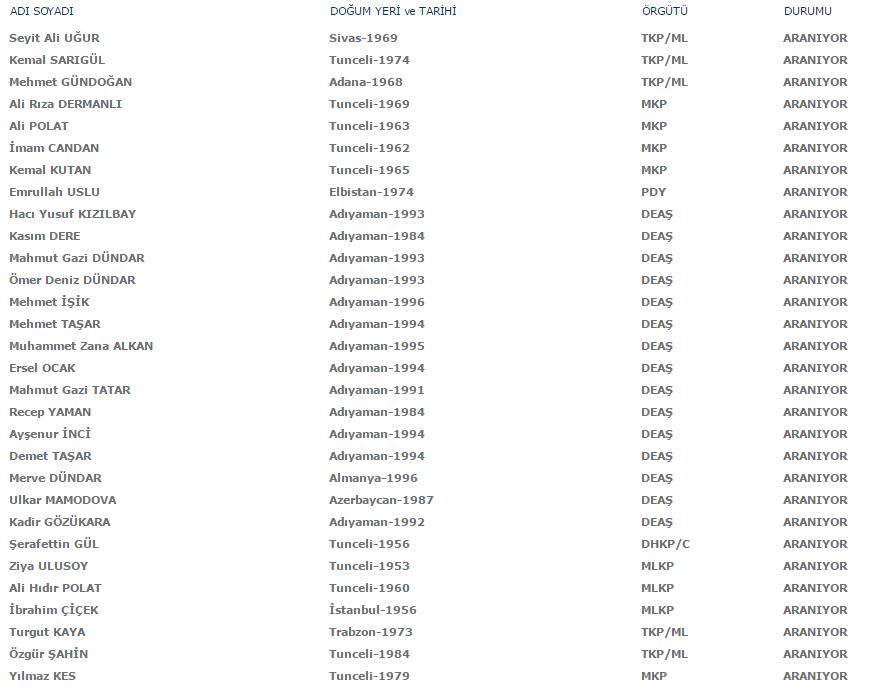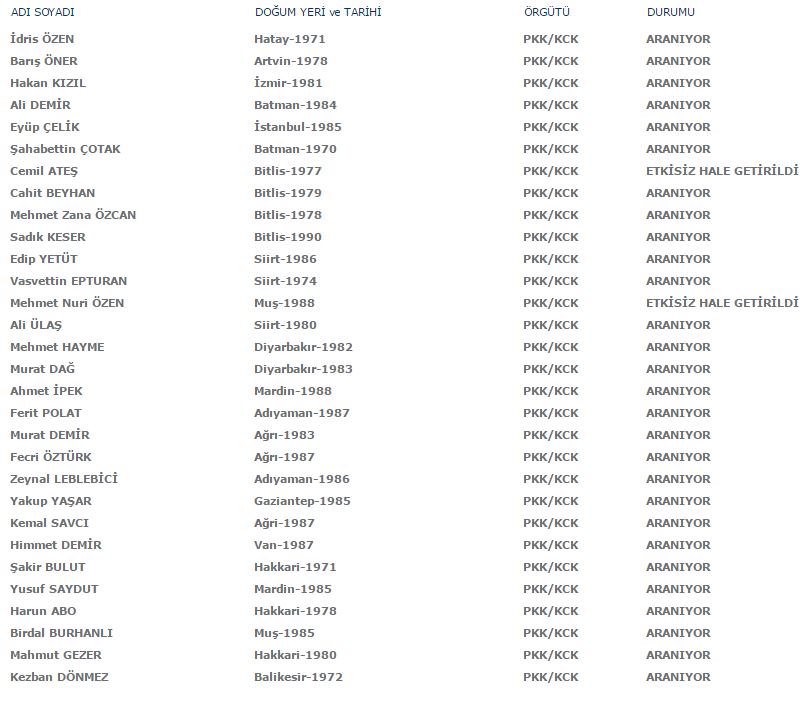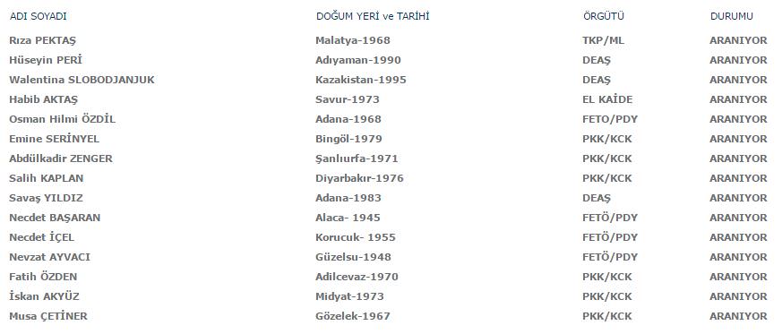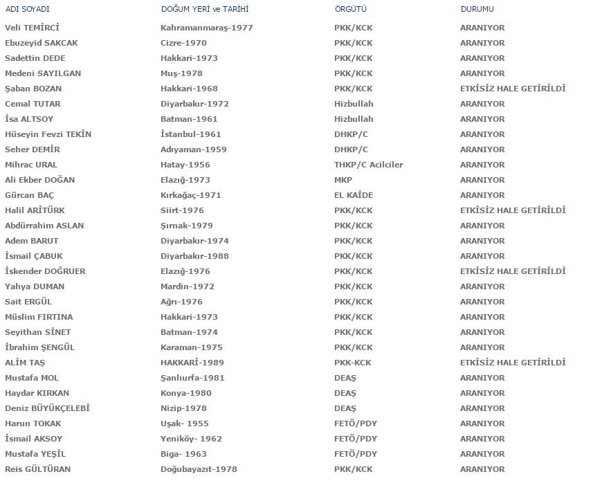 Aranan teröristler listesi güncellendi! İşte son hali