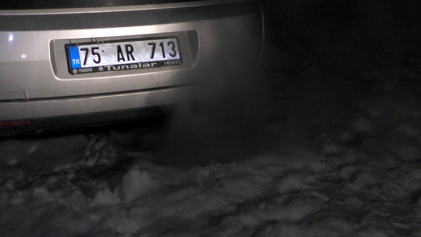 Bölgede birçok araç sahibi, gece saatlerinde araçlarını donmaması için kısa süreliğine çalıştırıyor.