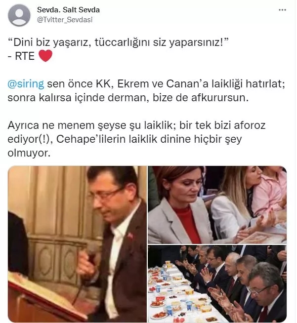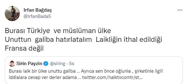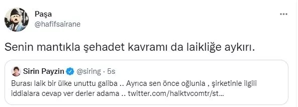 Twitter hesabından Bakan Soylu'nun sözlerinin yer aldığı haberi alıntılayan Payzın, "Burası laik bir ülke" şovuna girişti.