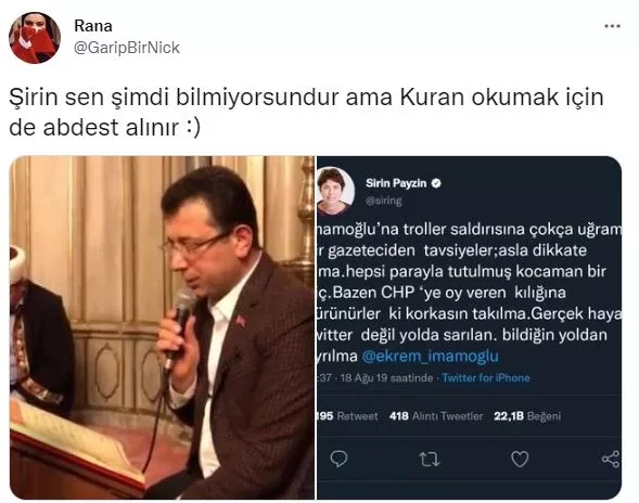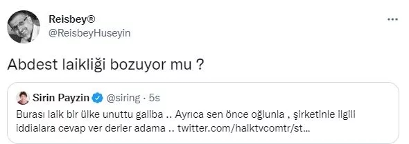CHP tarafından fonlanan Halk TV'de sunuculuk yapan Şirin Payzın, sosyal medya hesabından yaptığı paylaşımla, Bakan Soylu'nun 'abdest alın' çıkışından rahatsızlığını dile getirdi.
