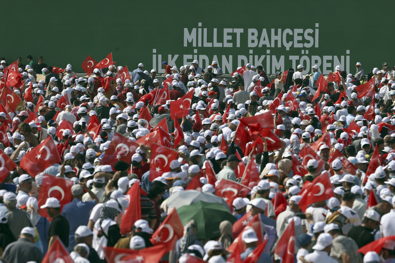 Eşi ile birlikte Atatürk Havalimanı Millet Bahçesi'nin ilk fidanlarını diken Cumhurbaşkanı Erdoğan, daha sonra fidanlara can suyu verdi. Alana İstanbul'un 1453'te fethedilmesini simgeleyen 145 bin 300 ağaç dikileceği öğrenildi.