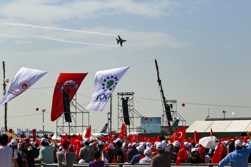 İstanbul'un fethinin 569. yılı nedeniyle İstanbul Havalimanı Millet Bahçesi'nde düzenlenen etkinlikle kutlanıyor. Başkan Erdoğan'ın da ilk fidanı etmesiyle büyük bir coşku başladı. Hem Solotürk'ün yaptığı gösteri hem de büyük bir amanı gösteren vatandaşlar renkli kareler oluşturdu.