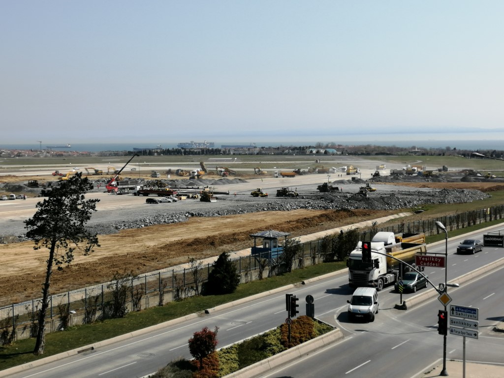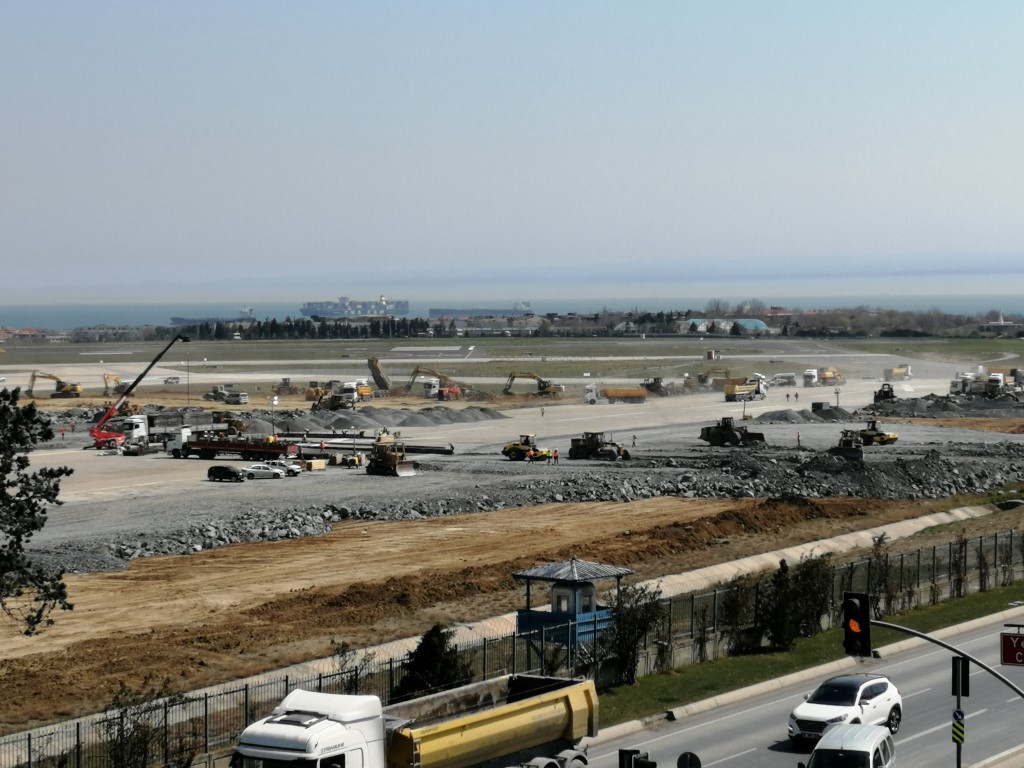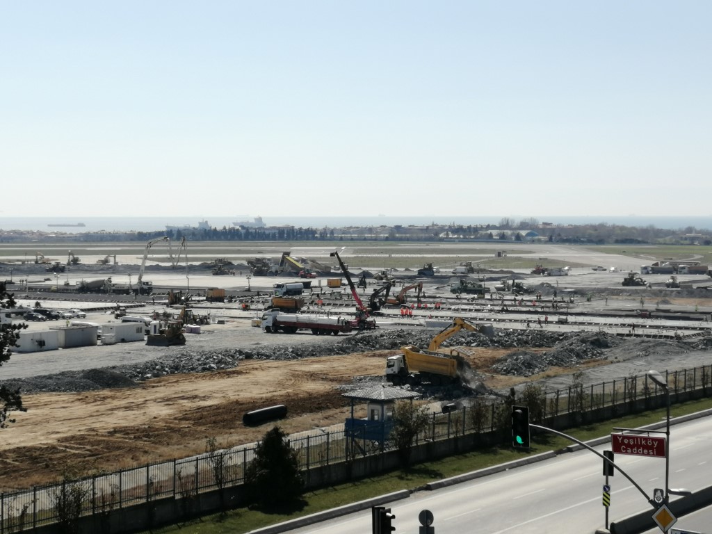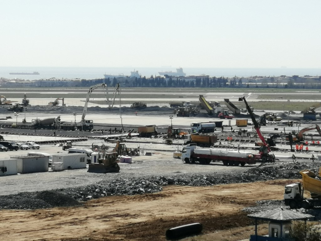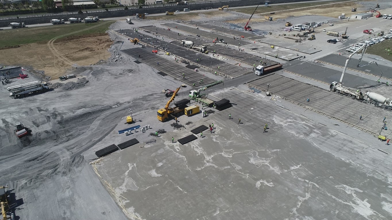 Tüm dünyada etkisini gösteren ve Türkiye'de de yayılan koronavirüs (Covid-19) ile mücadele kapsamında yapımına başlanan Atatürk Havalimanı'ndaki 1000 yataklı hastane inşaatında zemine beton dökülüyor.