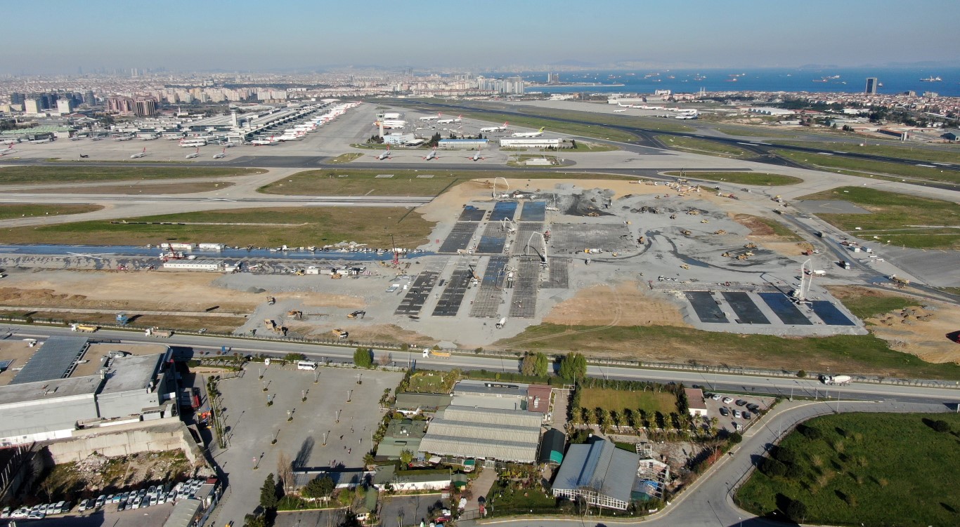 Başkan Erdoğan'ın yeni tip koronavirüs ile mücadele kapsamında yapımını duyurduğu Atatürk Havalimanı'ndaki 1000 yataklı hastane inşaatında çalışmalar hız kesmeden devam ediyor.