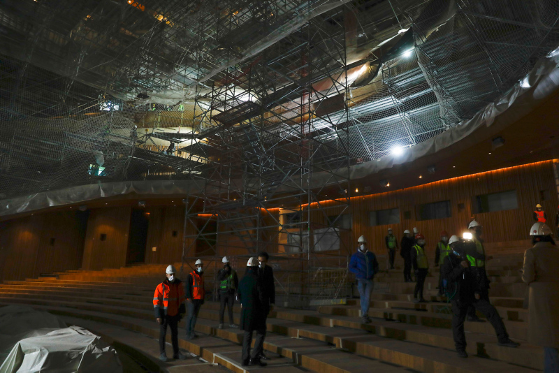 Taksim'deki Atatürk Kültür Merkezi'nin (AKM) kaba inşaatının yüzde 90'ı tamamlandı. İnşaatın bitimine kısa bir süre kala Kültür ve Turizm Bakanı Mehmet Nuri Ersoy, AKM'de medya kuruluşlarının genel yayın müdürleri, genel müdürleri, temsilcileriyle bir araya geldi.