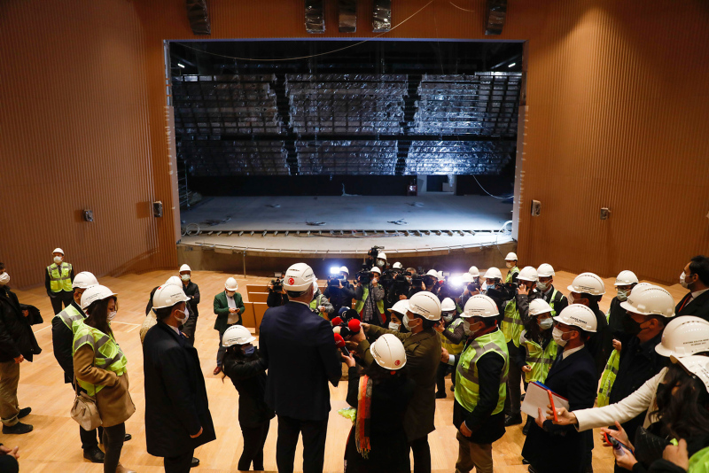 Program Bakan Ersoy'un sunumu ile başladı. Atatürk Kültür Merkezi'nin kaba inşaatının yüzde 90'nının bittiğini söyleyen Bakan Ersoy, "Mekanik inşaatının ise büyük bir kısmı tamamlandı. Atatürk Kültür Merkezi'nin (AKM) inşaatının maliyeti tahmini 1.8 milyar. Merkez dünyadaki örnekleriyle kıyaslandığında 32 ay gibi kısa bir süre inşaatı tamamlanmış olacak" diye konuştu.