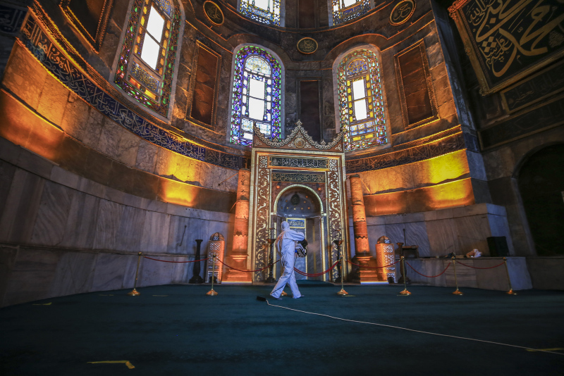 Açılışın yapıldığı günden beri cami içi ve dışında temizlik ile hijyen konusunda çalışmalarını sürdüren Fatih Belediyesi ekipleri, Ayasofya-i Kebir Camii'ni 86 yıl sonra ilk bayramına hazırlıyor.