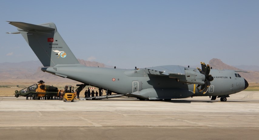 Savaş uçakları, askeri nakliye ve saldırı helikopterlerinin katıldığı tatbikatta savaş pilotları zor manevraları gerçekleştirdi.