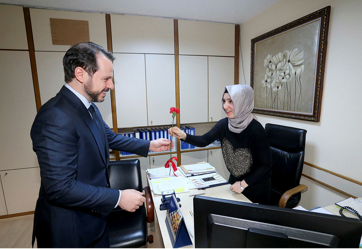 Bakan Berat Albayrak, bakanlıkta düzenlen etkinlikte, "Kadın eli değmeyen iş incelikten, zarafetten ve merhametten nasibini almamış demektir. Tüm kadınların 8 Mart Dünya Kadınlar Günü kutlu olsun. Bu günün cinsiyet adaletsizliğine son verecek bir başlangıç olmasını temenni ederim." ifadesini kullandı.