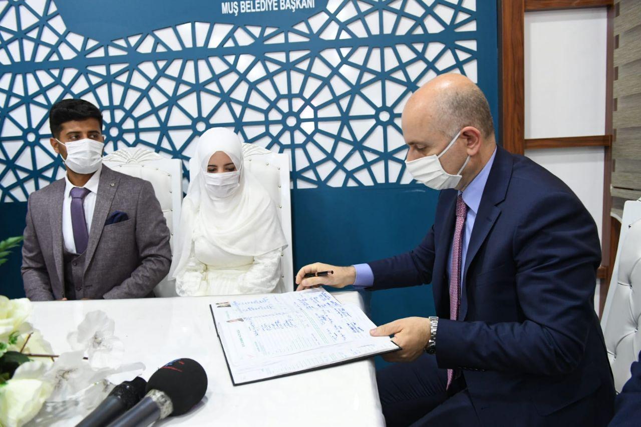 Programı kapsamında Valilik ziyaretinin ardından Muş Belediyesi'ne geçerek, Belediye Başkanı Feyat Asya ile bir süre görüşen Bakan Karaismailoğlu, ayrıca beraberindeki Muş Valisi İlker Gündüzöz, AK Parti Muş Milletvekili Mehmet Emin Şimşek, Bitlis Milletvekili Vahit Kiler ile Rabia Güresmer ve Ercan Kaya çiftine nikah şahitliği de yaptı. Nikah töreninin ardından çifte mutluluklar dileyen İsmailoğlu, evlilik cüzdanını geline verdi.