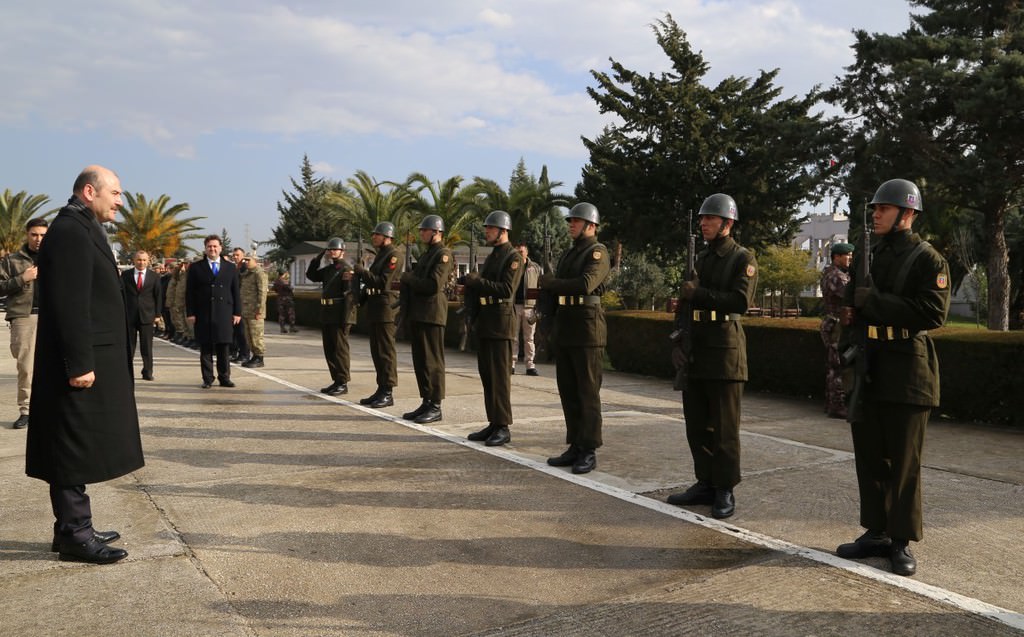 Burada komutan yardımcıları ve askerleri selamlayan Soylu, daha sonra askerlerle kahvaltı yaptı.