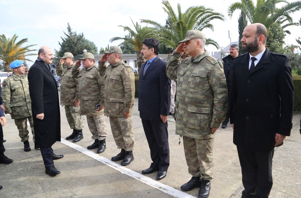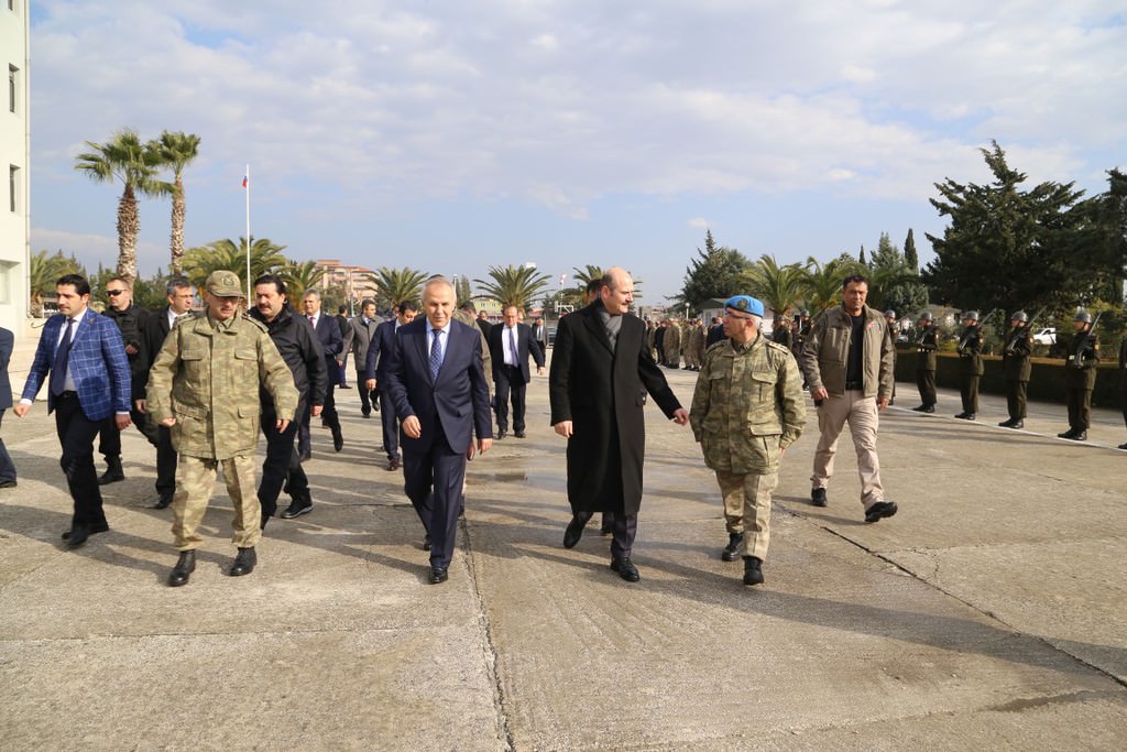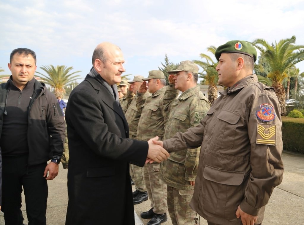 Soylu, İl Jandarma Komutanlığı'nda Albay Turgay Aras tarafından karşılandı.