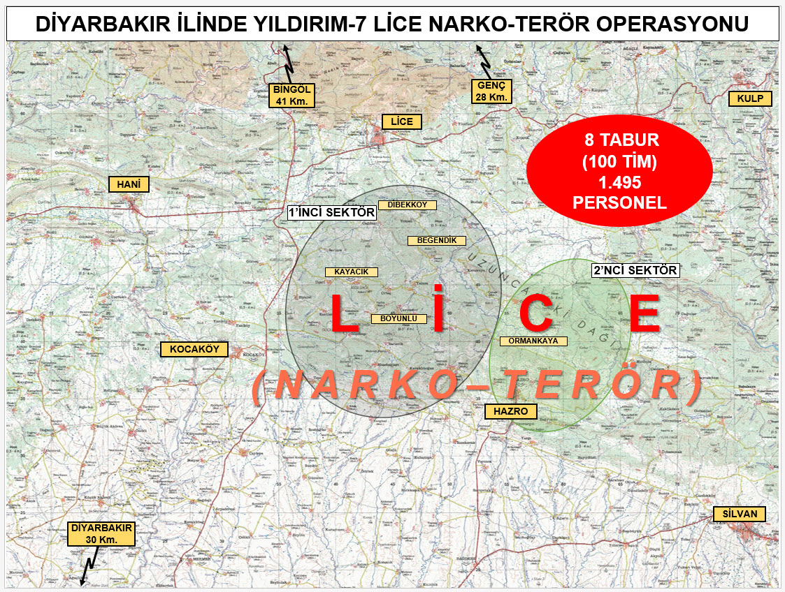 Bölücü terör örgütünü tamamen ülke gündeminden çıkarmak ve bölgede barındığı değerlendirilen teröristleri etkisiz hale getirmek maksadıyla Diyarbakır İl Jandarma Komutanlığınca "YILDIRIM-7 LİCE NARKO-TERÖR " Operasyonu başlatıldı.