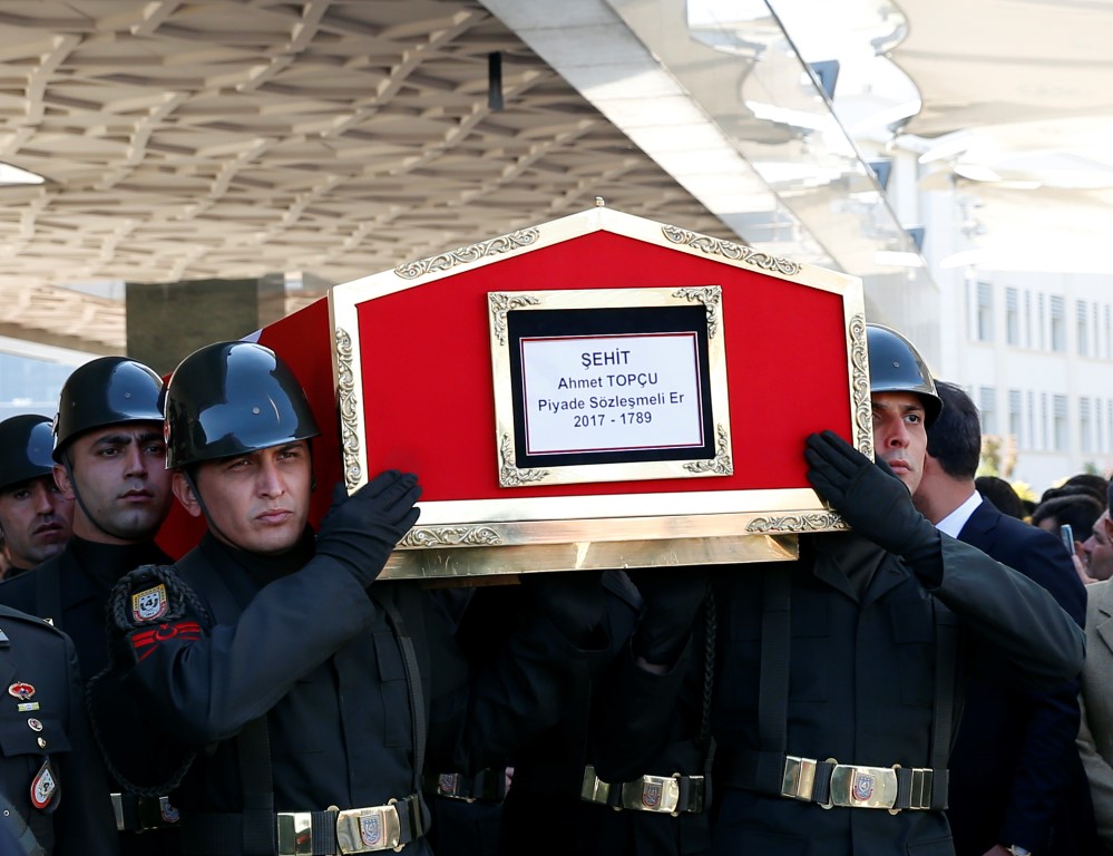Barış Pınarı Harekâtı'nın ilk asker şehidi Piyade Sözleşmeli Er Ahmet Topçu, Ankara'da düzenlenen cenaze töreniyle toprağa verildi.