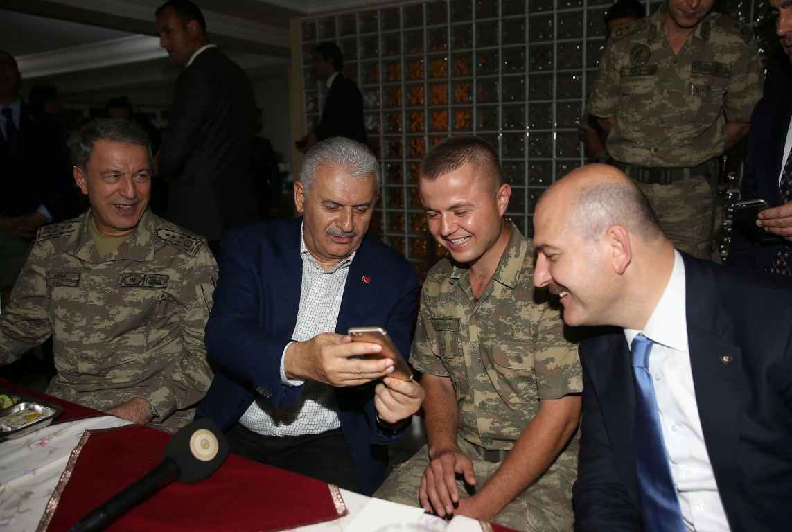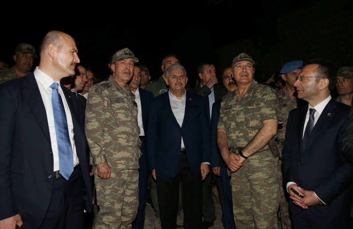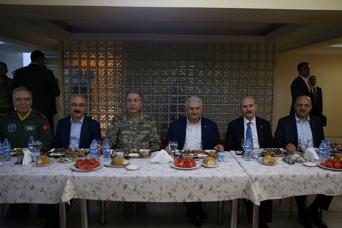 Başbakan Yıldırım, beraberinde Genelkurmay Başkanı Orgeneral Akar, Milli Savunma Bakanı Işık ve İçişleri Bakanı Soylu ile Lice 1. Jandarma Komando Alay Komutanlığındaki askerlerle sahurda bir araya geldi
