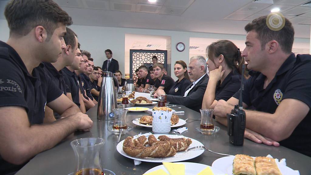 Başbakan Binali Yıldırım, bayram namazının ardından camiden ayrıldıktan sonra Şehit Polis Memuru Mehmet Şevket Uzun Üsküdar Çevik Kuvvet Yerleşkesi'ne giderek polislerle bayramlaştı. Bir polis memuru için kız isteyen Başbakan Yıldırım, bir polisin eş adayının ailesini de aradı.