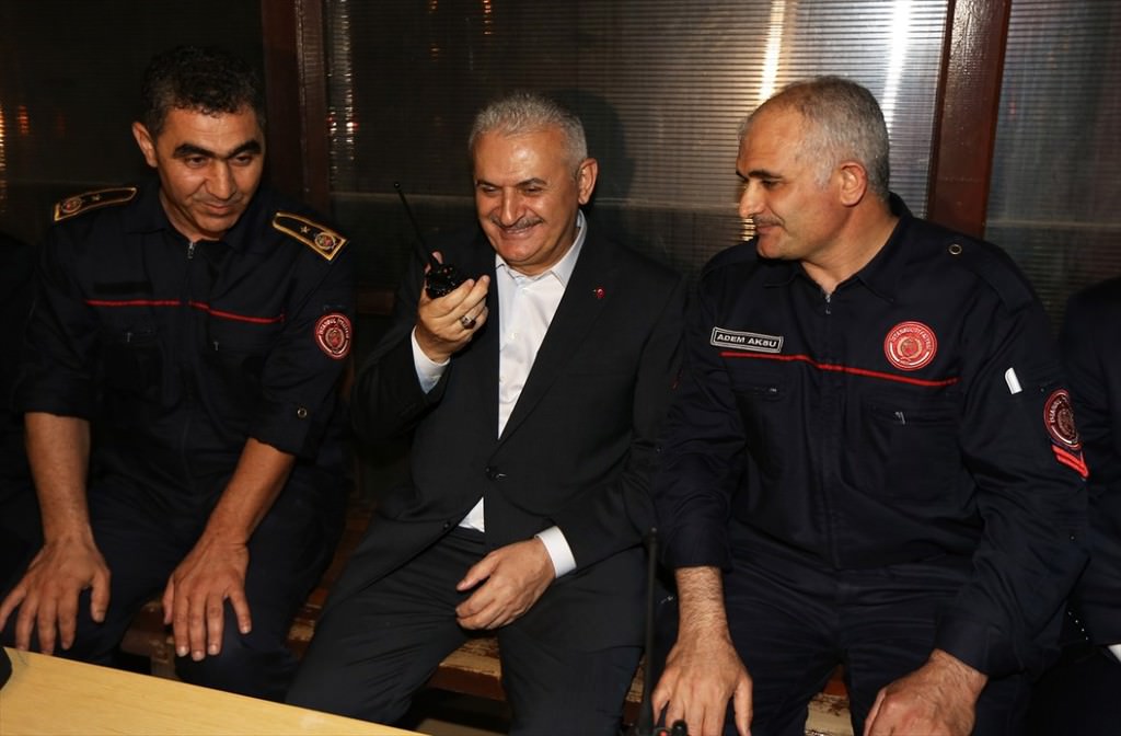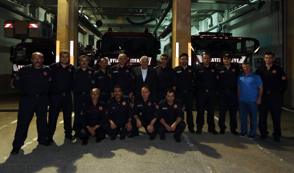 Başbakan Binali Yıldırım, Hatay dönüşü İstanbul'da teravih namazı ve kandil programı sonrasında bir itfaiye istasyonunu ziyaret etti.