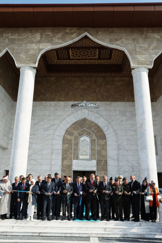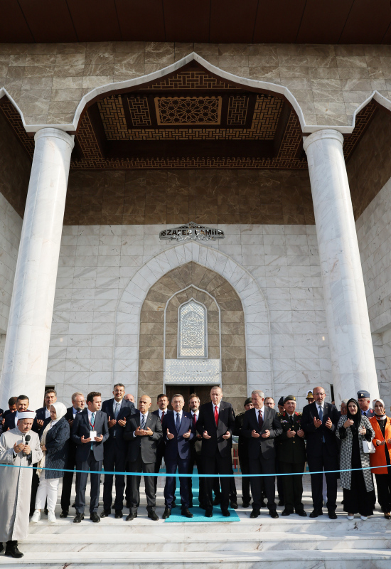 Cumhurbaşkanı Erdoğan, şehitler için Fatiha okudu. Erdoğan, beraberindeki Cumhurbaşkanı Yardımcısı Fuat Oktay, Milli Savunma Bakanı Hulusi Akar, Tarım ve Orman Bakanı Vahit Kirişci, Cumhurbaşkanlığı İletişim Başkanı Fahrettin Altun, Genelkurmay Başkanı Orgeneral Yaşar Güler, AK Parti Genel Başkan Yardımcıları Hamza Dağ ve Vedat Demiröz ile caminin açılışını gerçekleştirdi.