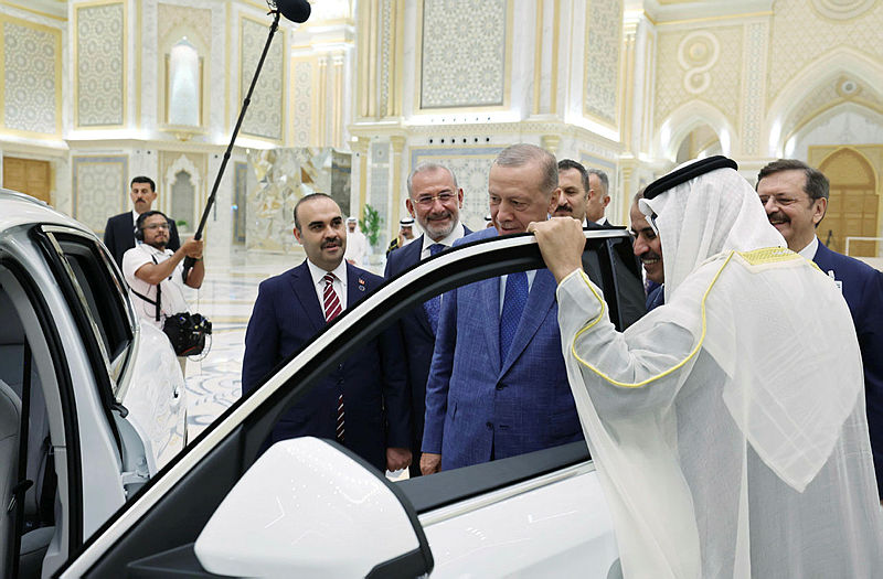 Başkan Recep Tayyip Erdoğan ve Birleşik Arap Emirlikleri (BAE) Devlet Başkanı Şeyh Muhammed Bin Zayed Al Nahyan, Togg ile Abu Dabi caddelerinde tur attı.