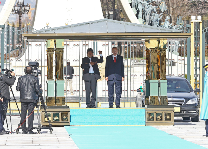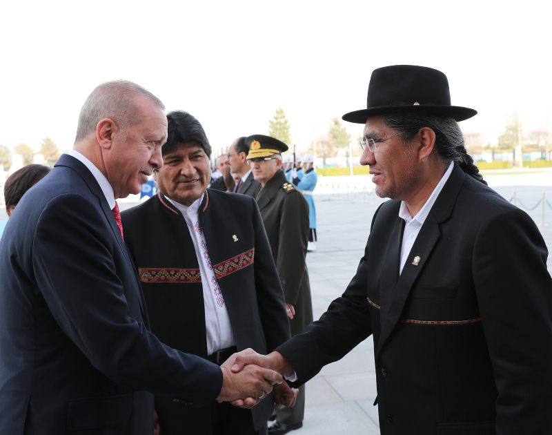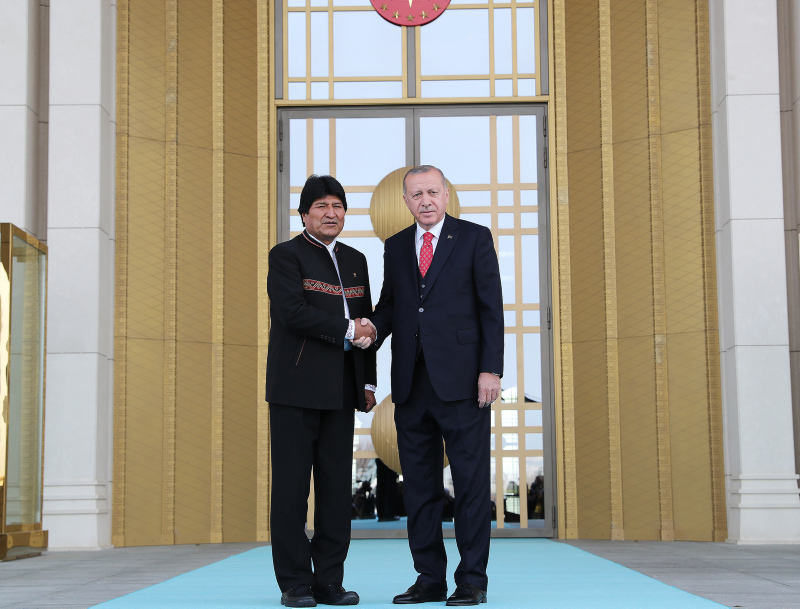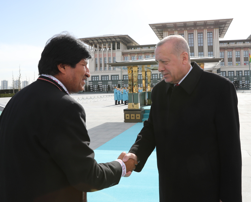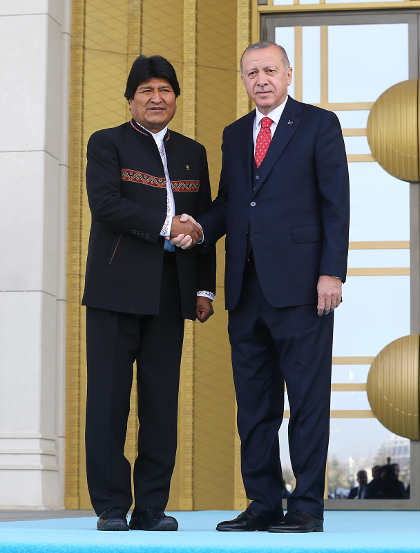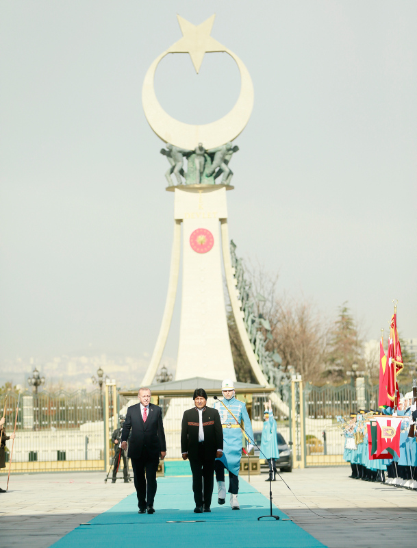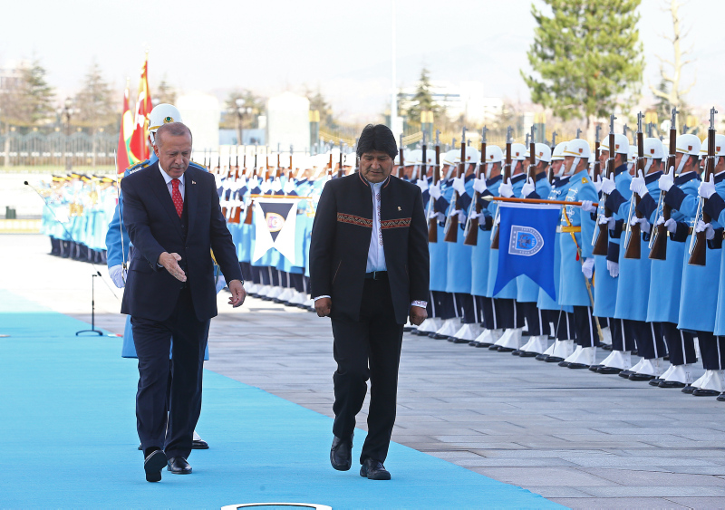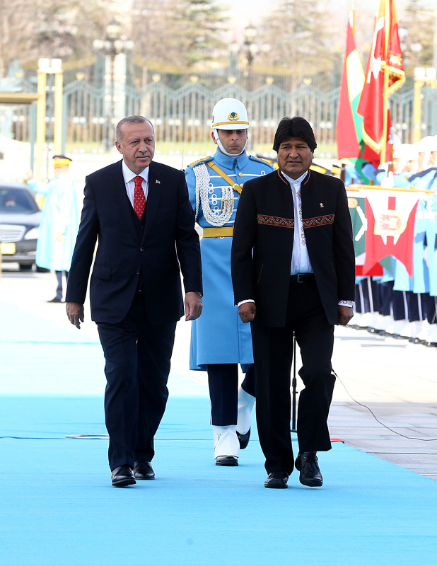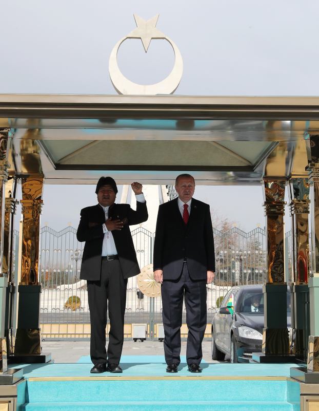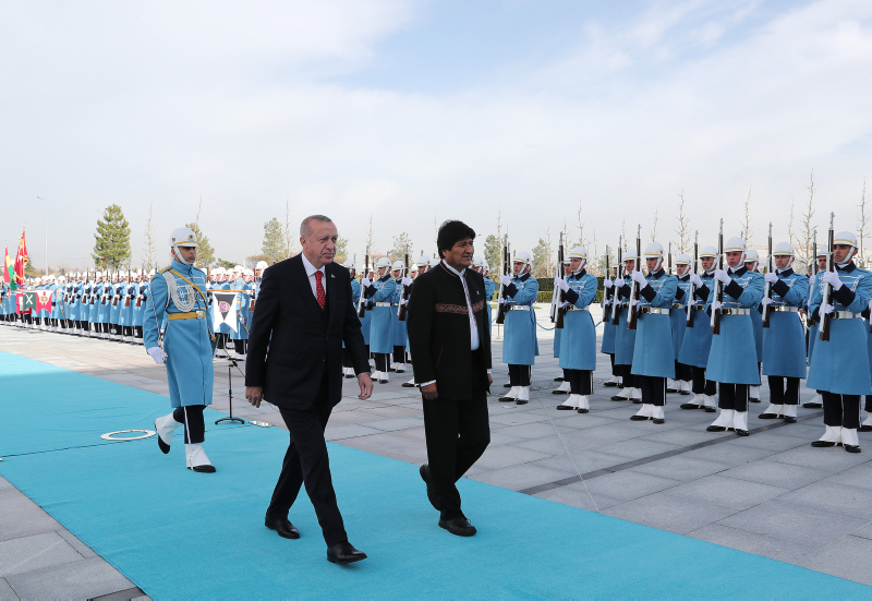 Başkan Recep Tayyip Erdoğan, başkent Ankara'ya gelen Bolivya Devlet Başkanı Juan Evo Morales Ayma'yı törenle karşıladı. Törenden etkilenen Morales, Muhafız Alayı Tören Kıtası'nı, "Merhaba asker" diyerek selamladı.