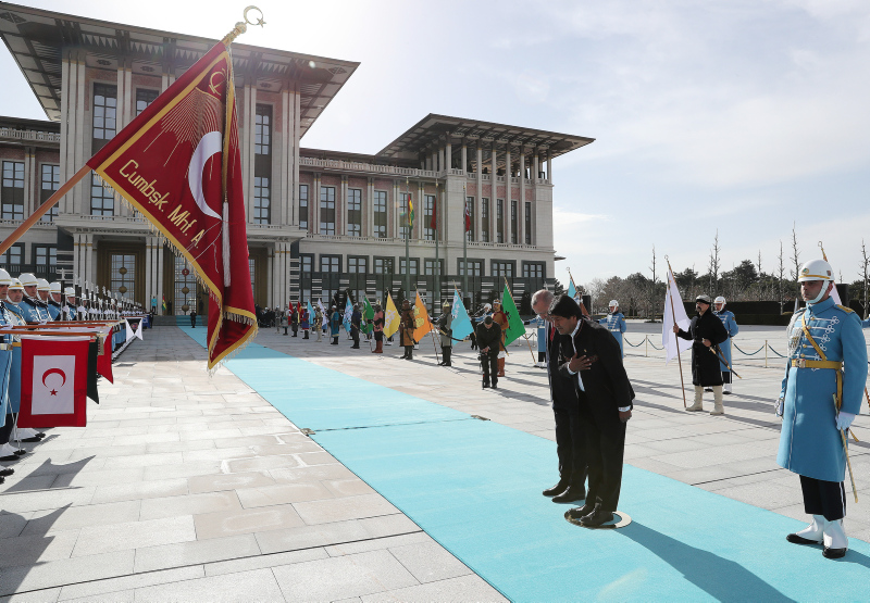 Morales, Muhafız Alayı Tören Kıtası'nı, "Merhaba asker" diyerek selamladı. Törende, tarihte kurulan 16 Türk devletini temsil eden bayraklar ve askerler de yer aldı.