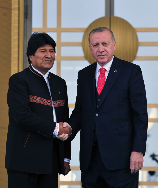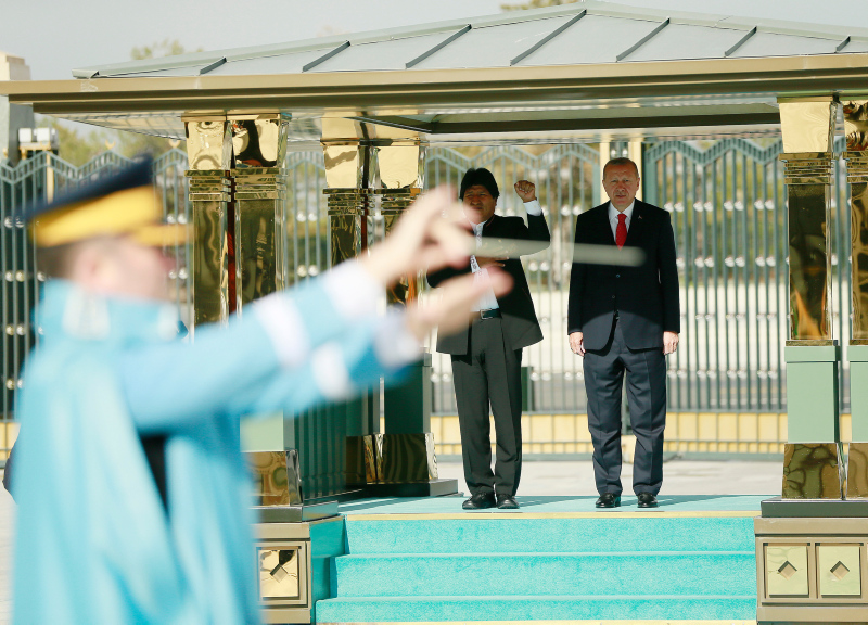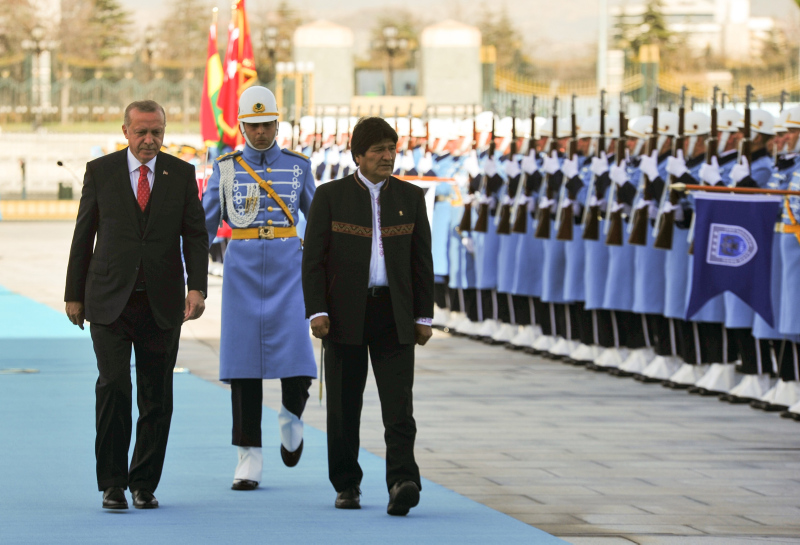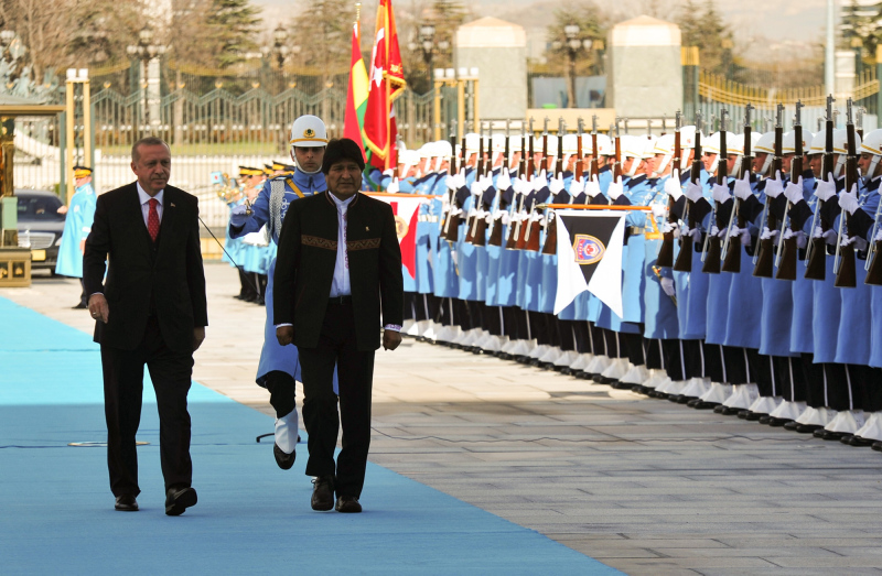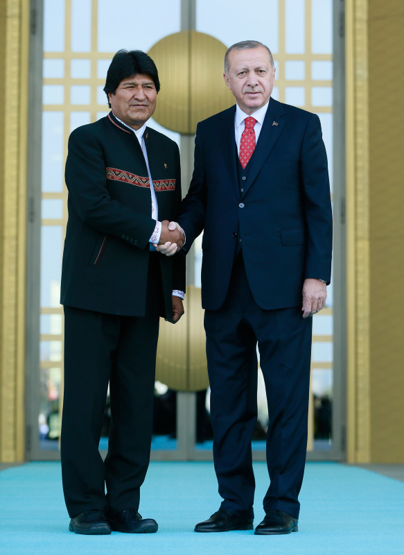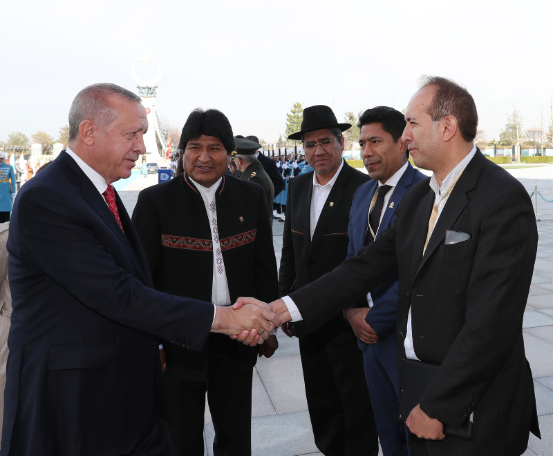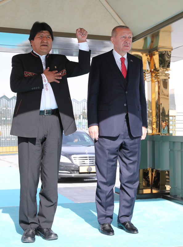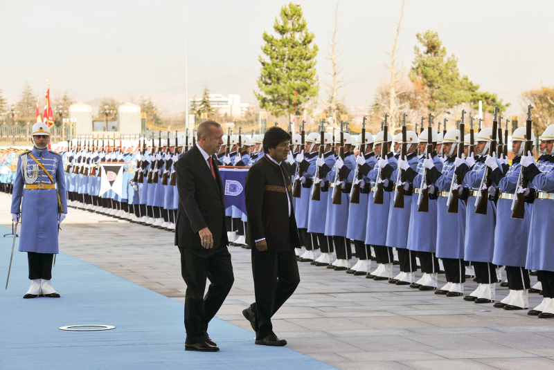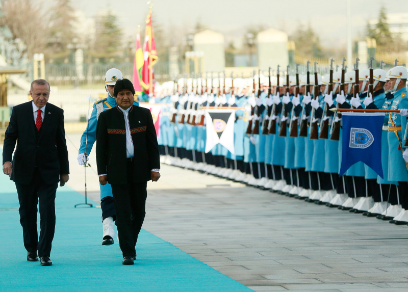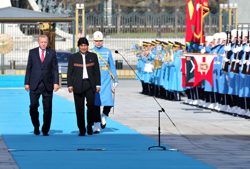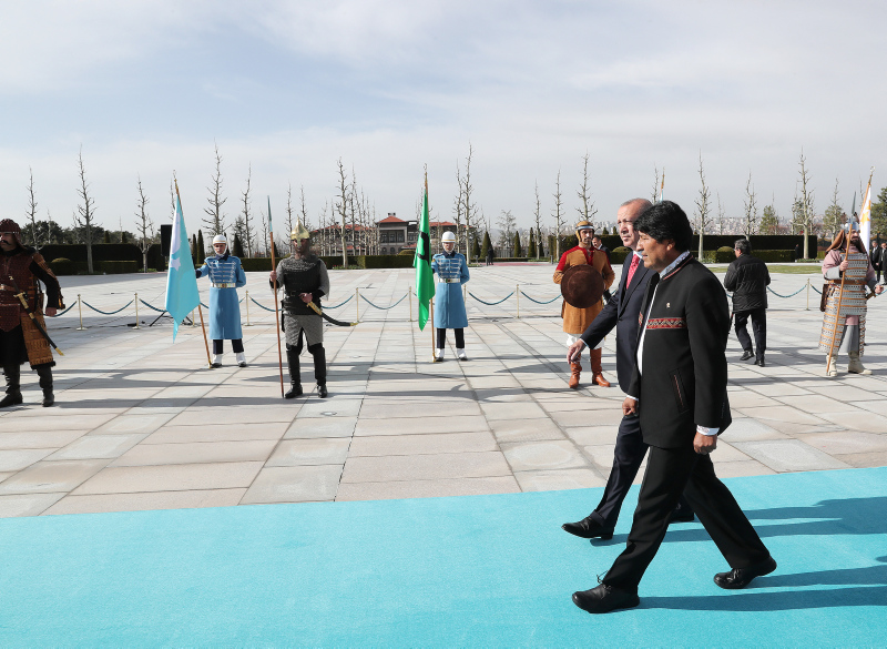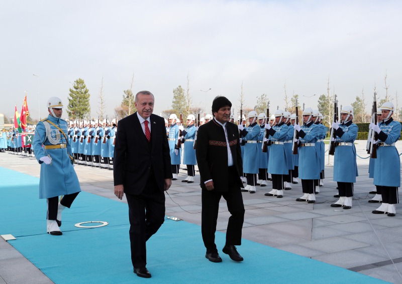 Başkan Recep Tayyip Erdoğan, başkent Ankara'ya gelen Bolivya Devlet Başkanı Juan Evo Morales Ayma'yı törenle karşıladı. Törenden etkilenen Morales, Muhafız Alayı Tören Kıtası'nı, "Merhaba asker" diyerek selamladı.