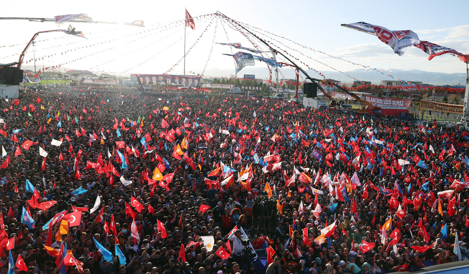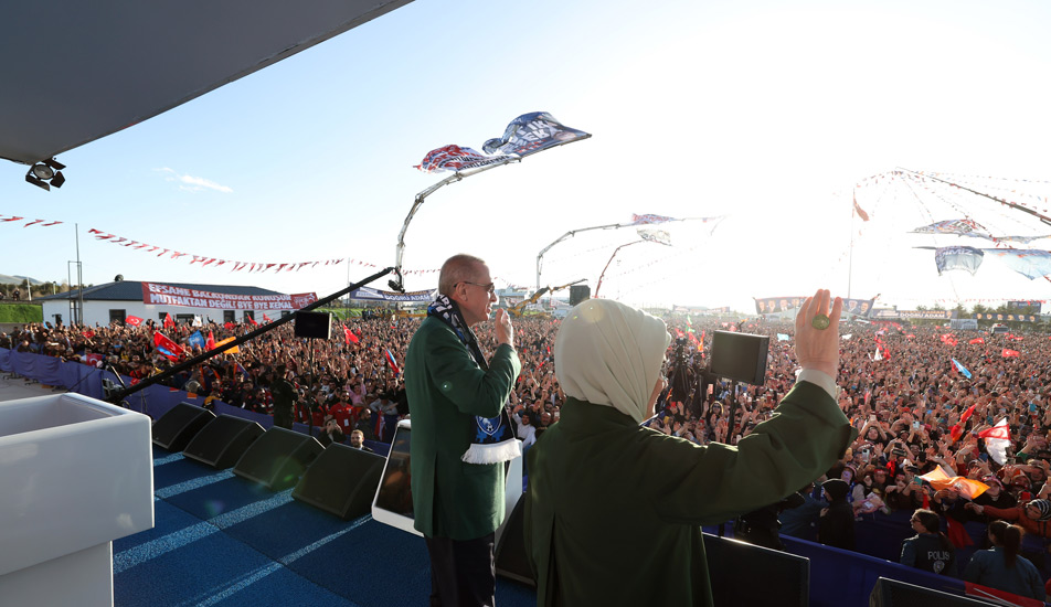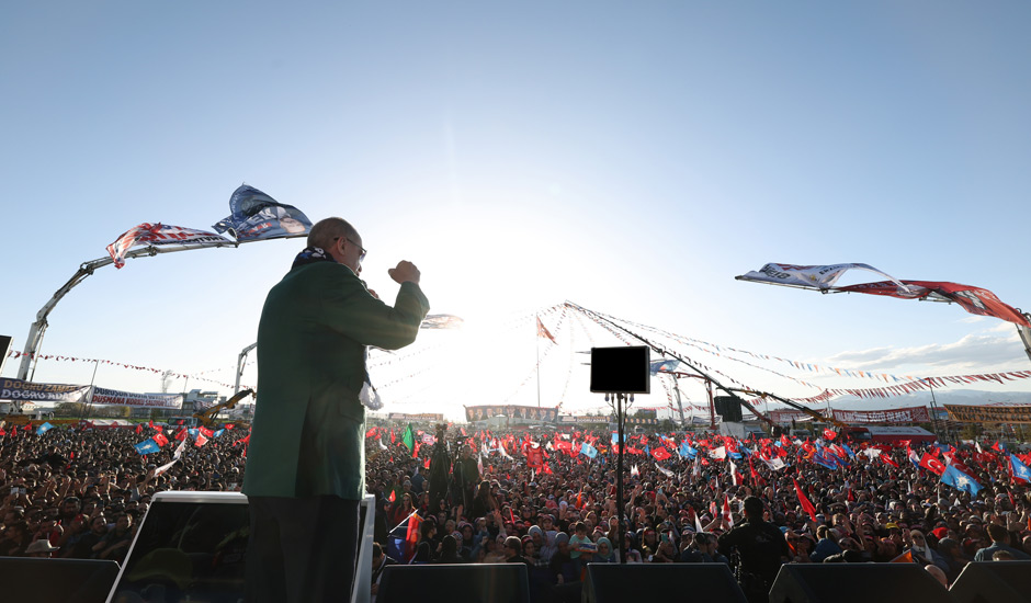 Başkan Recep Tayyip Erdoğan, 14 Mayıs seçimleri miting programı için gittiği Erzurum'da havalimanından kent merkezine gelinceye kadar yol üzerinde vatandaşların yoğun sevgi gösterileriyle karşılandı. Vatandaşlara otobüsten hediyeler veren Başkan Erdoğan, 500 metrelik yolu yarım saatte geçebilerek miting alanına gidebildi.