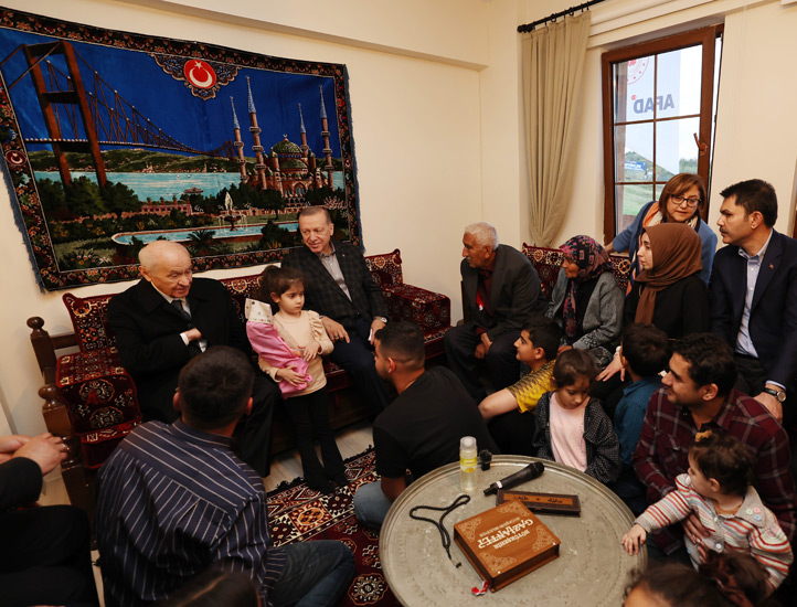 Başkan Recep Tayyip Erdoğan, Gaziantep Nurdağı'nda yapımı tamamlanan köy evlerinin teslim töreninin ardından köy evinde vatandaşlarla bir araya geldi. Daha sonra Başkan Erdoğan, Kahramanmaraş'ta BAYKAR'ın yaptığı konteyner kenti ziyaret etti.