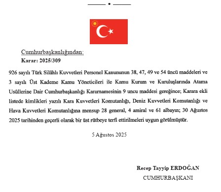 2025 YAŞ toplantısında alınan kararlar Başkan Erdoğan'ın imzası ile Resmi Gazete'de yayımlanarak yürürlüğe girdi.