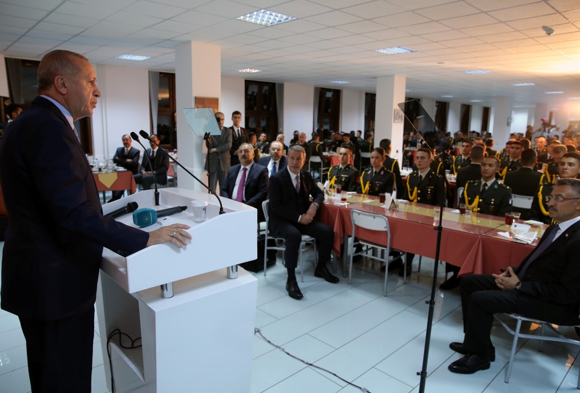 Başkan Recep Tayyip Erdoğan, Kara Harp Okulunda Milli Savunma Üniversitesi öğrencileriyle iftarda bir araya geldi. İftar ardından Erdoğan, Milli Savunma Üniversitesi öğrencilerine hitap ederek, "İnşallah en yakın zamanda Mümbiç'i ve Fırat'ın doğusunu terör örgütlerinden sizler temizleyeceksiniz" dedi.